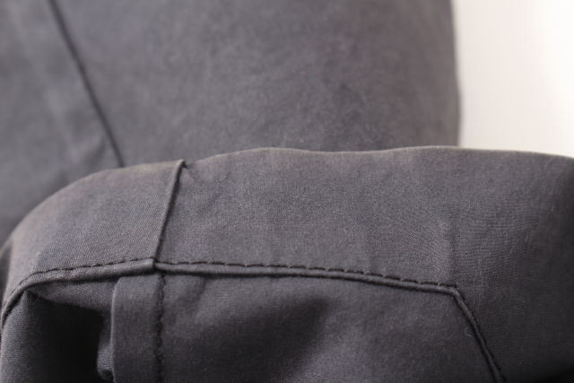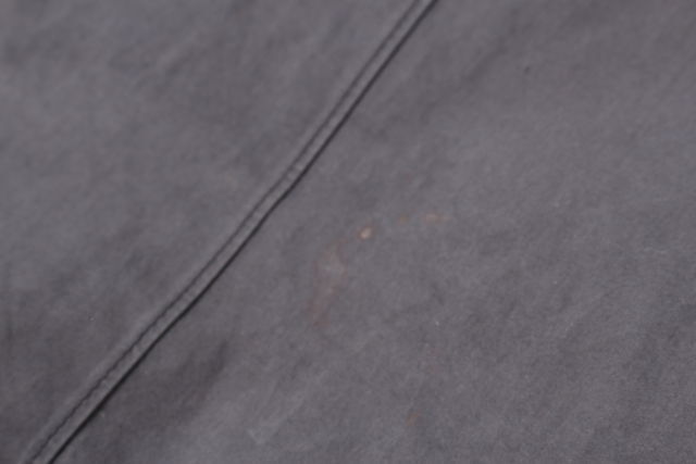 【状態】汚れ・シミ→全体的に色褪せあり。★後背中下付近中央に薄汚れあり。★両袖口裏側や左手首付近など数か所に白い汚れあり。縫製部分に白い薄汚れあり。裏側ゴム部分に黒いインクのような付着汚れあり。