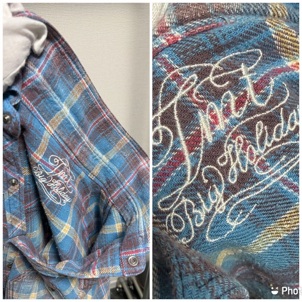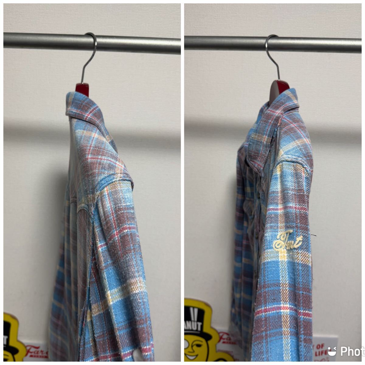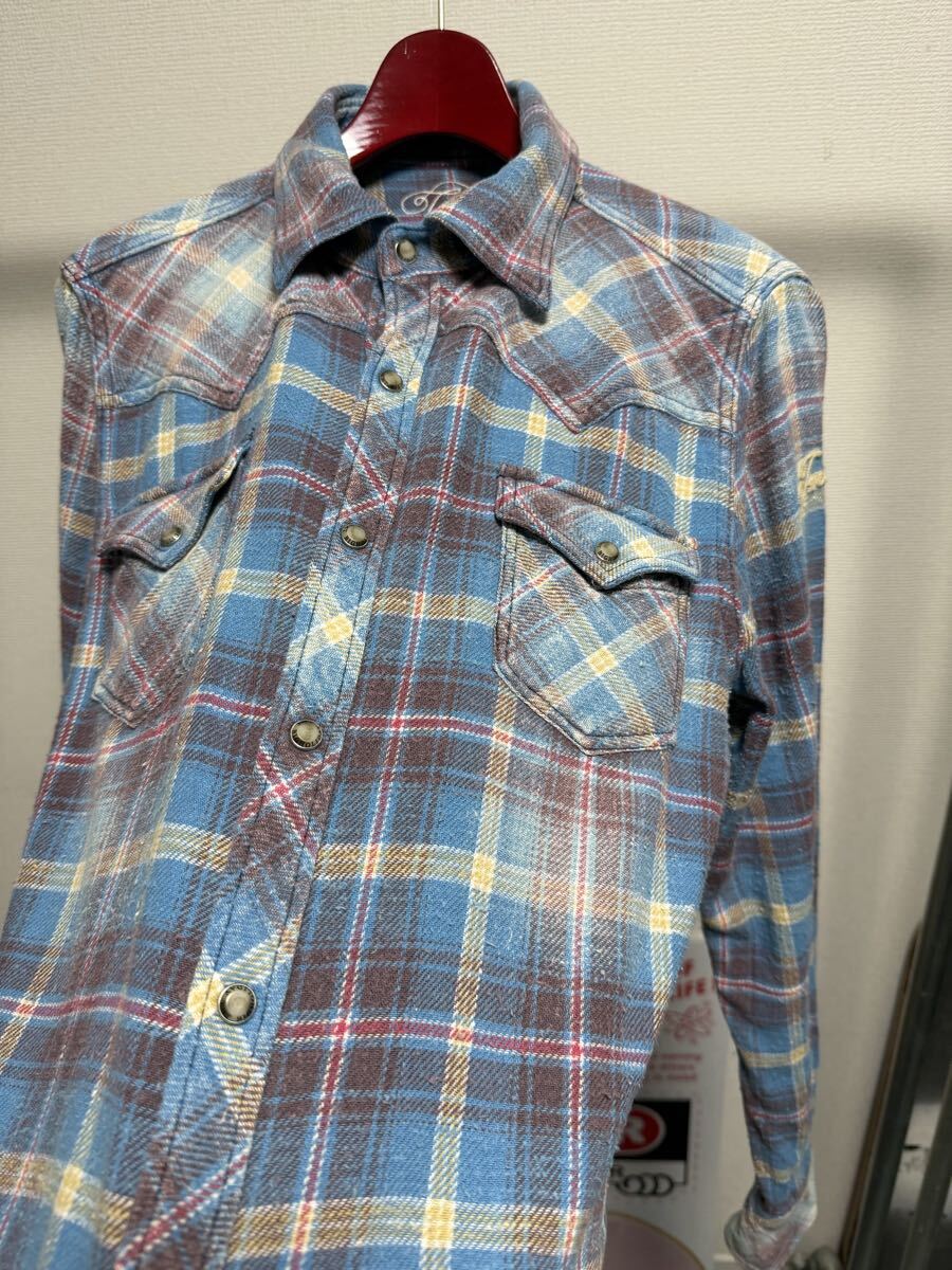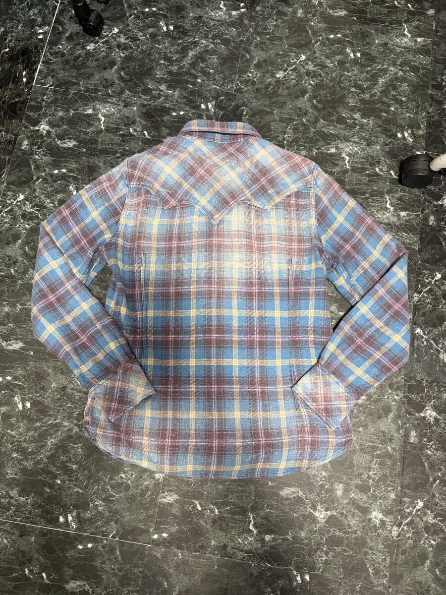 TMTのダメージ加工インディゴチェックウエスタンネルシャツになります!