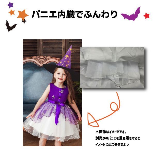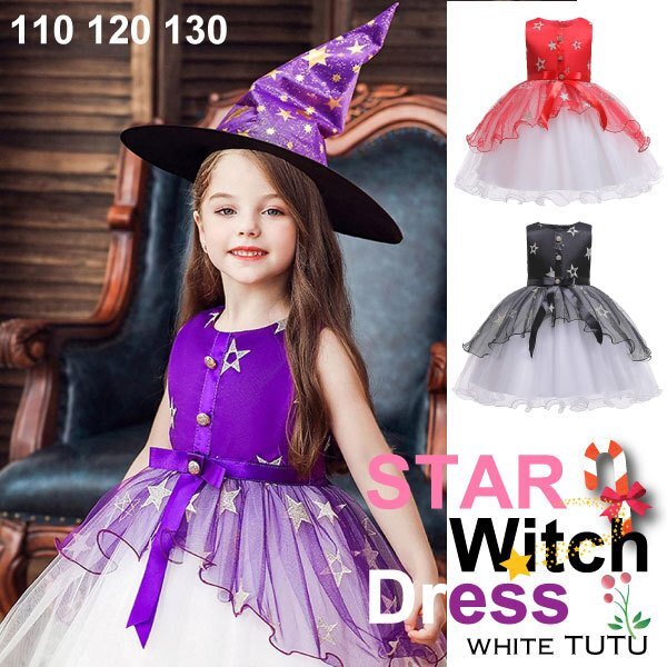 | ☆スタードレス ホワイトチュチュ 帽子付き ※ご購入しましたらオーダーフォームにてご希望のサイズとカラーをお知らせください。 パープル120cm,130cm在庫切れです 【サイズ】 ■110cm ■120cm ■130cm 【カラーバリエーション】 ■パープル ■ブラック ■レッド 【商品名】 スタードレス ホワイトチュチュ 【素材】 ・ポリエステル ・コットン 【サイズ】 ■110 ■120 ■130 【バリエーション】 ・パープル ・ブラック ・レッド 【仕様】 1.スカートがふんわり♪ボリュームあるチュチュになってます! 2.背面ファスナー 3.スカート内部に簡易パニエ付き。 4.それぞれのカラーに合わせたとんがり帽子がセット! 【ポイント♪】 ■可愛すぎる!スター柄の魔女ドレスが登場です♪ ■白いレースのチュチュで女の子らしさアップ★ ■3カラーから!お子様にぴったりな白をお選びください。 ■パーティーやお遊戯会に活躍!インスタグラムにアップすればたちまち人気者です★ ■帽子つきでしっかりコスプレできる嬉しいセットです。 ■スカート部分に簡易パニエが内臓されていて、可愛くふわふわに! *別売りのパニエをお使いいただくとよりボリュームアップできます。 | ||||