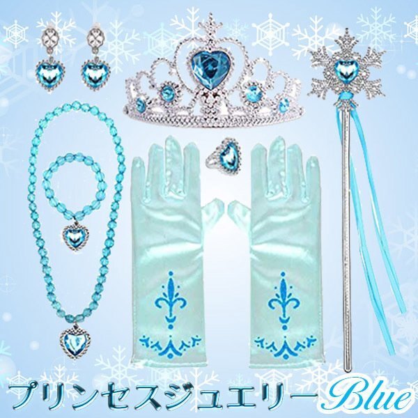 プリンセスドレスアップ ジュエリー ブルー 7点セット アナと雪の女王 ディズニー キッズ 子供 コスプレ ティアラ ハロウィン ステッキ 姫