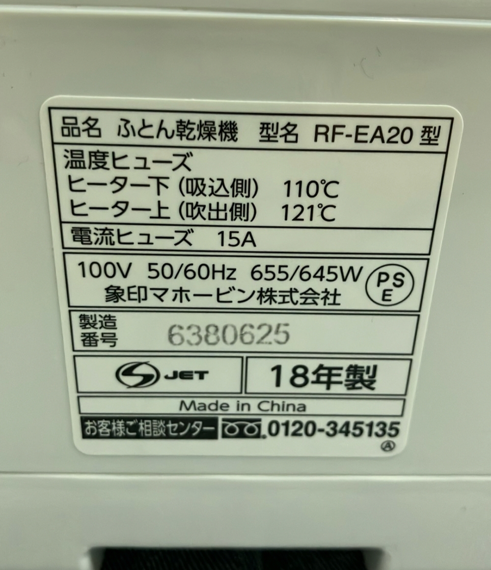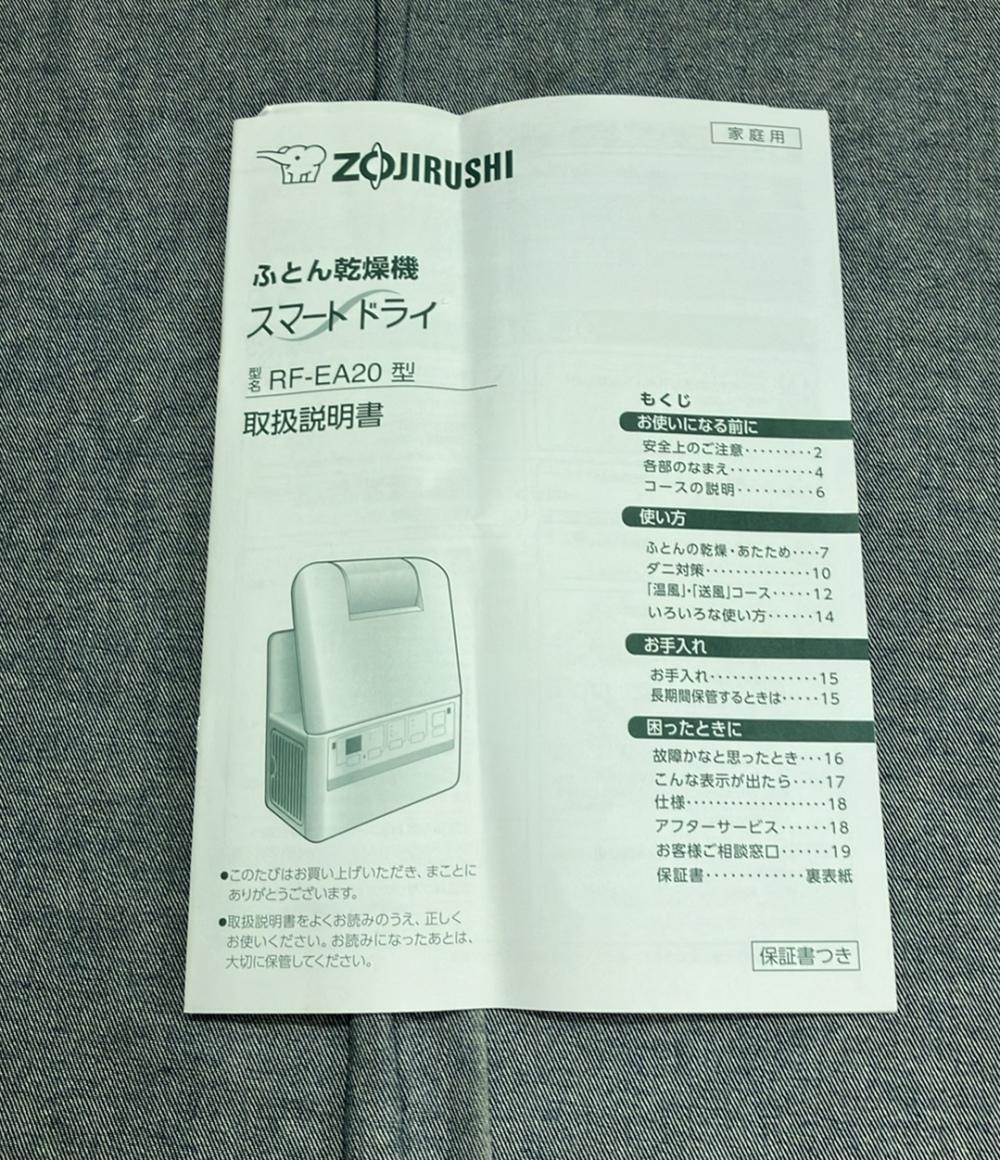 | アイテム名 | 象印 ふとん乾燥機 スマートドライ RF-EA20-WA ZOJIRUSI |