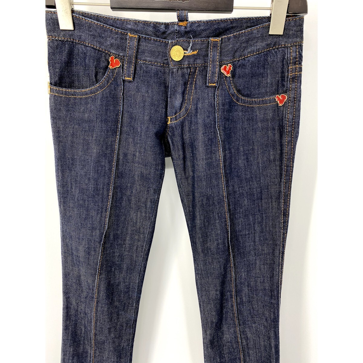 A6014/美品 春夏 DSQUARED2 ディースクエアード ストレート スリム スキニー ジーンズ デニム パンツ 38 インディゴ/イタリア製 レディース