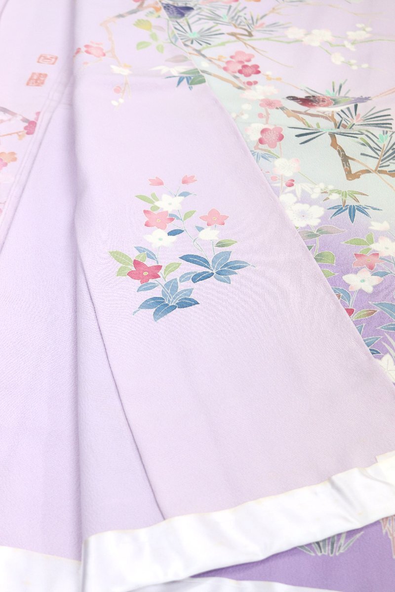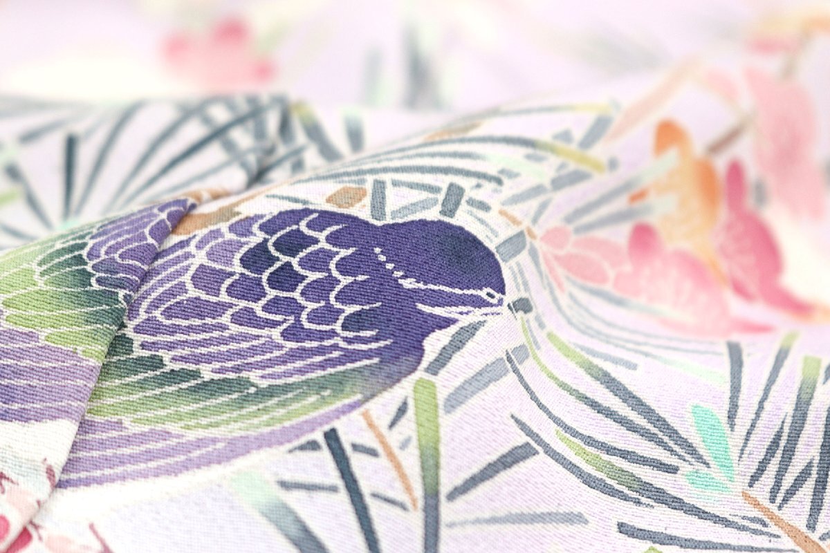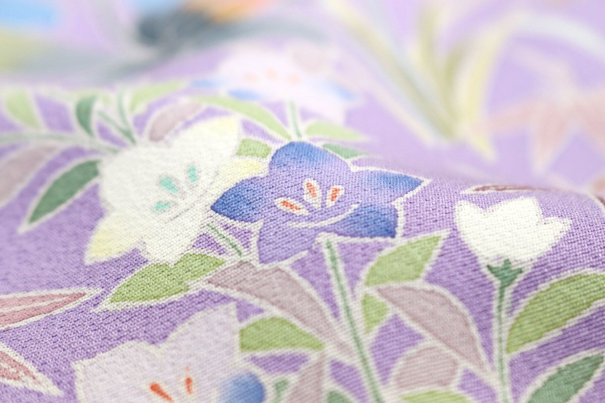 「加賀の華」と題された、丹後ちりめんの生地は、薄紫色のお色目でございます。 |