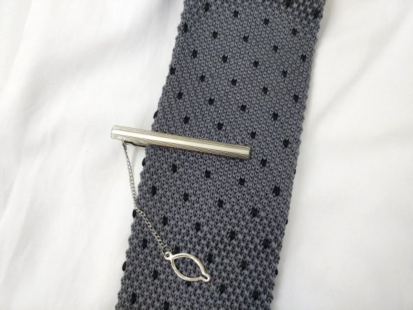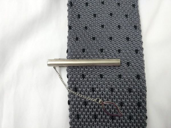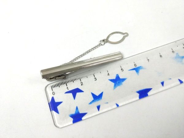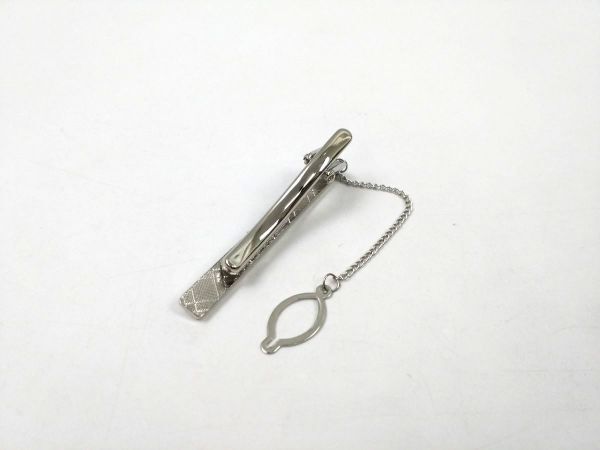| ネクタイピン ボタンに止められるチェーン付きです。 普段使いや結婚式・パーティーにもオススメです。 カラー:写真の通り 素材:真鍮、ロジウムコーティング サイズ:約5.6cm X 1.8cm 自宅保管の未使用品です。 パッケージはありません。 |