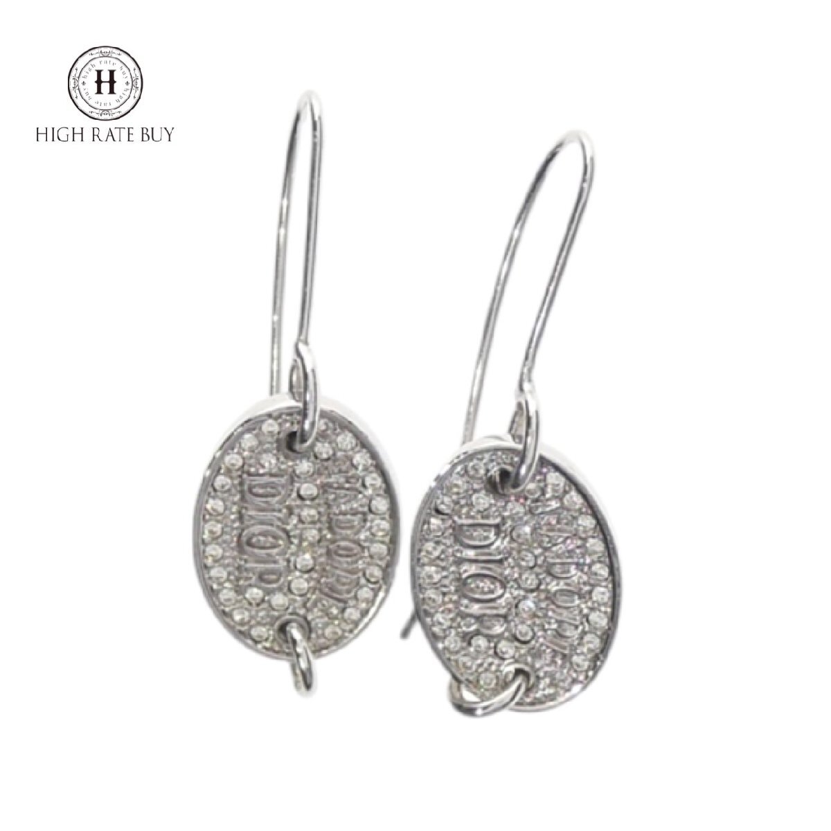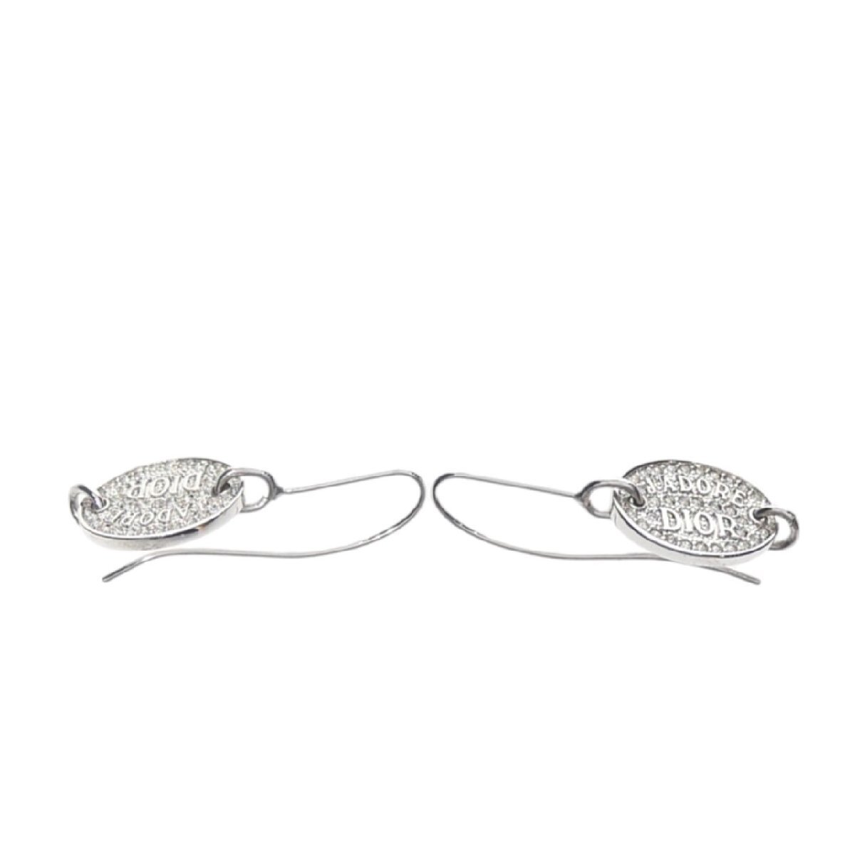 1円スタート 美品 Christian Dior クリスチャンディオール ラインストーン ロゴピアス シルバーカラー 耳飾り アクセサリー レディース