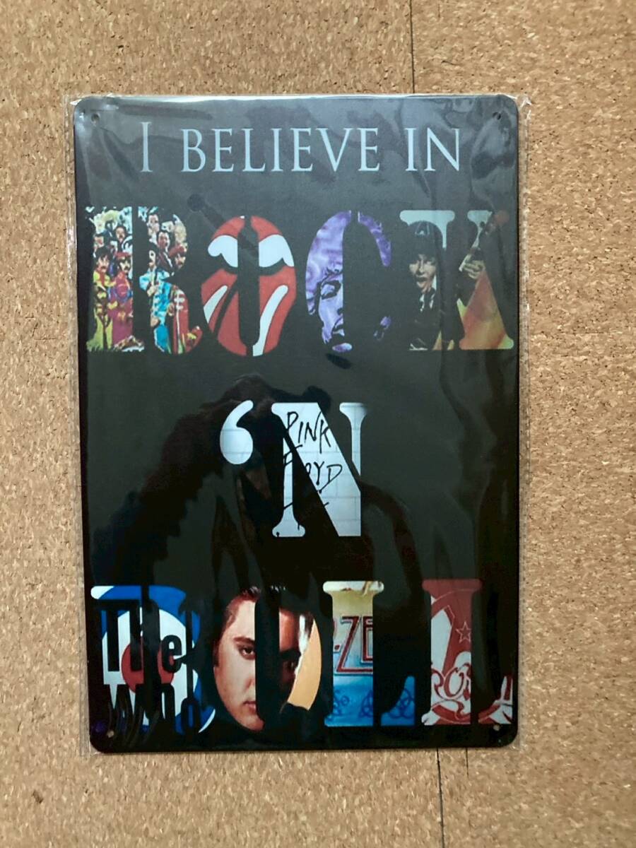 I Believe In Rock 'N' Roll ロック ブリキ看板 メタルサインプレート アメリカン雑貨 ウォールデコ レトロ ヴィンテージ風 アンティーク