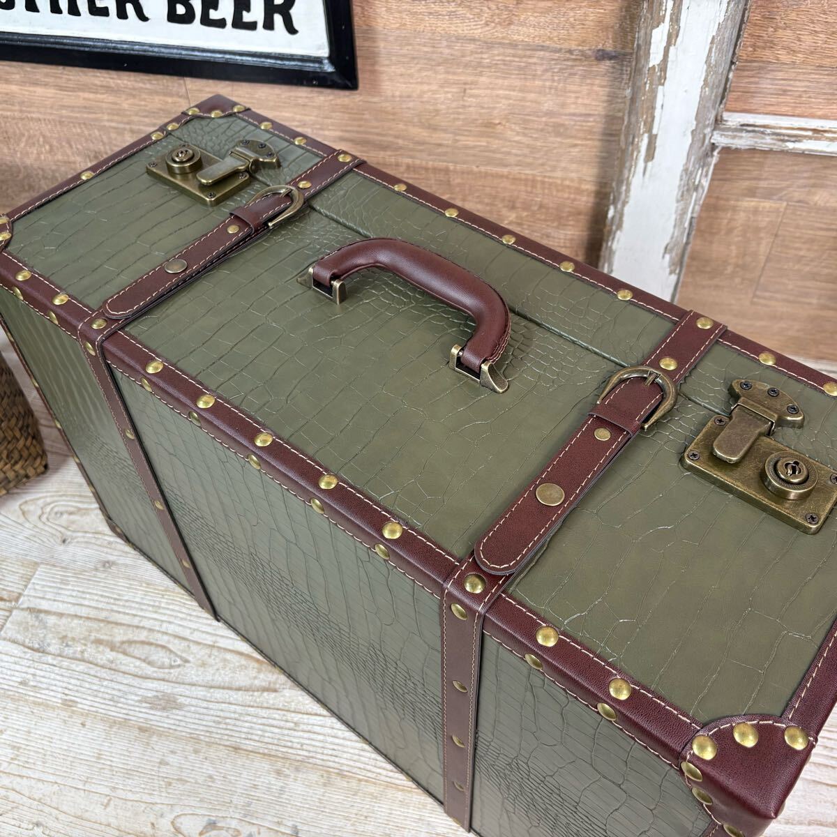 ボックス BOX ケース 収納箱 工具箱 インテリア雑貨 インダストリアル アメリカン カフェ ウエディング用品 ウェルカムボックス アンティーク ビンテージ ガレージ雑貨 ワニ柄