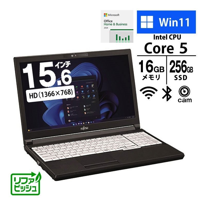 ノートパソコン 富士通 15.6型 LIFEBOOK A5513/R FMVA0F043 Core 5-120U メモリ16GB SSD256GB DVD-ROM Wi-Fi6E Webカメラ Windows Hello対応 テンキー MS Office 2024 Windows11 Pro リファビッシュ PC 2025年モデル