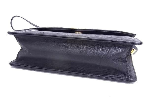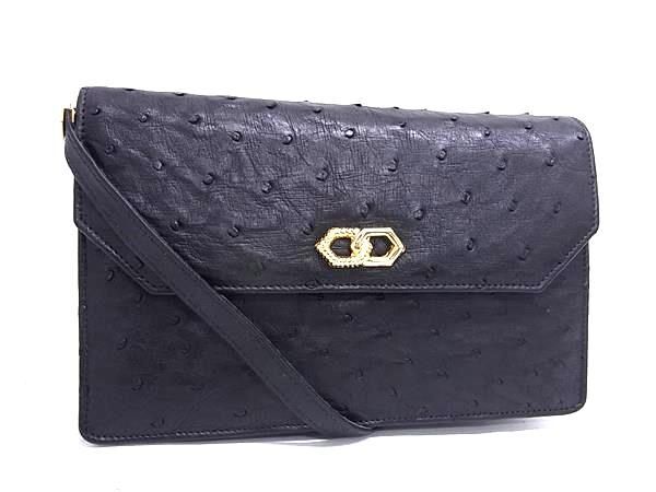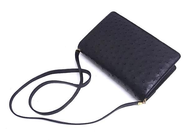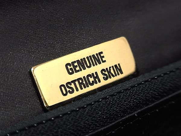 1円 ■極上■本物■美品■ オーストリッチ ショルダーバッグ ポシェット 肩掛け 斜め掛けかばん ブラック系×ゴールド系 GA6148