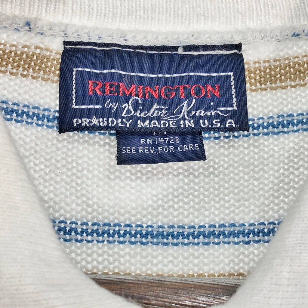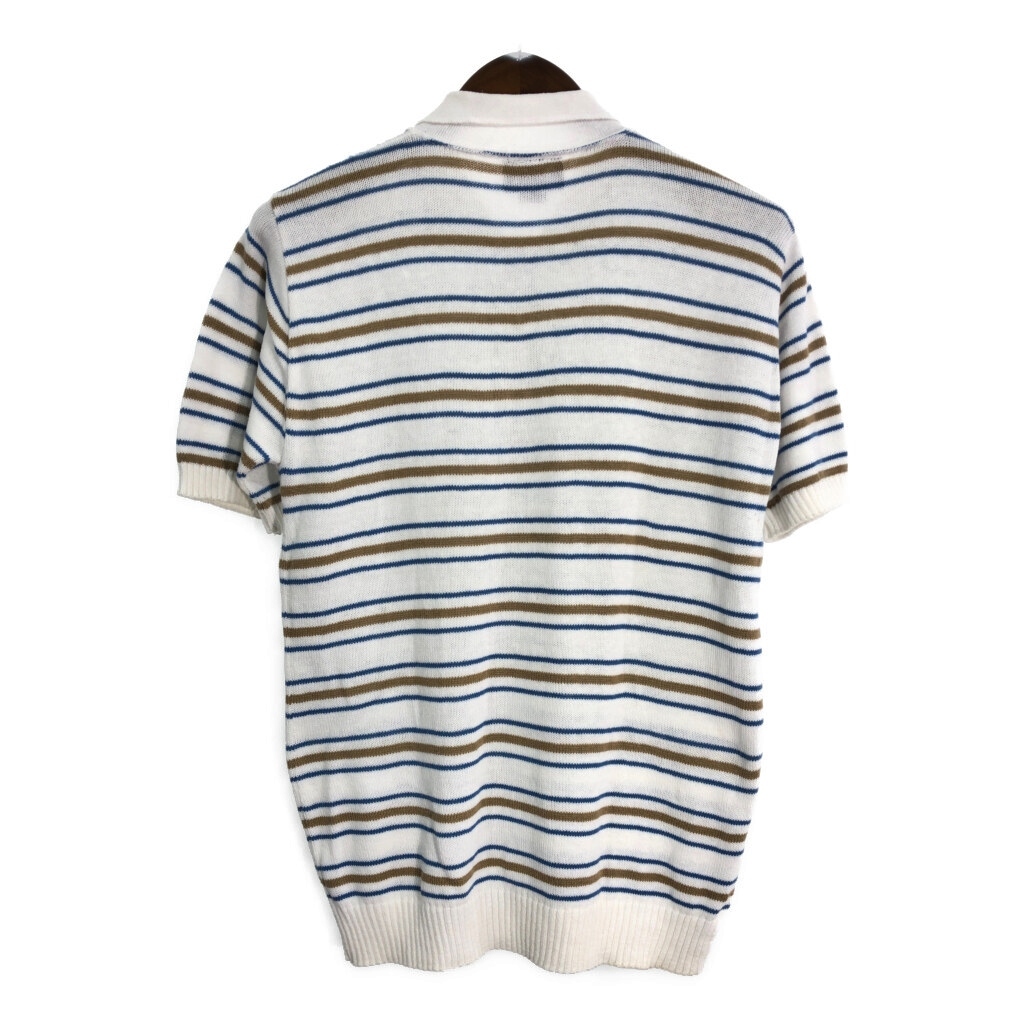 | 【商品管理番号】 R8924 【サイズ】 M 【実寸サイズ】 肩幅:約42cm 着丈:約68cm 身幅:約51cm 袖丈:約25cm 【主な素材】 表地 : コットン 【色】 ホワイト 【仕様】 生産国 : USA製 90年代 ボーダー 【状態】 汚れ:襟、裾 | |||