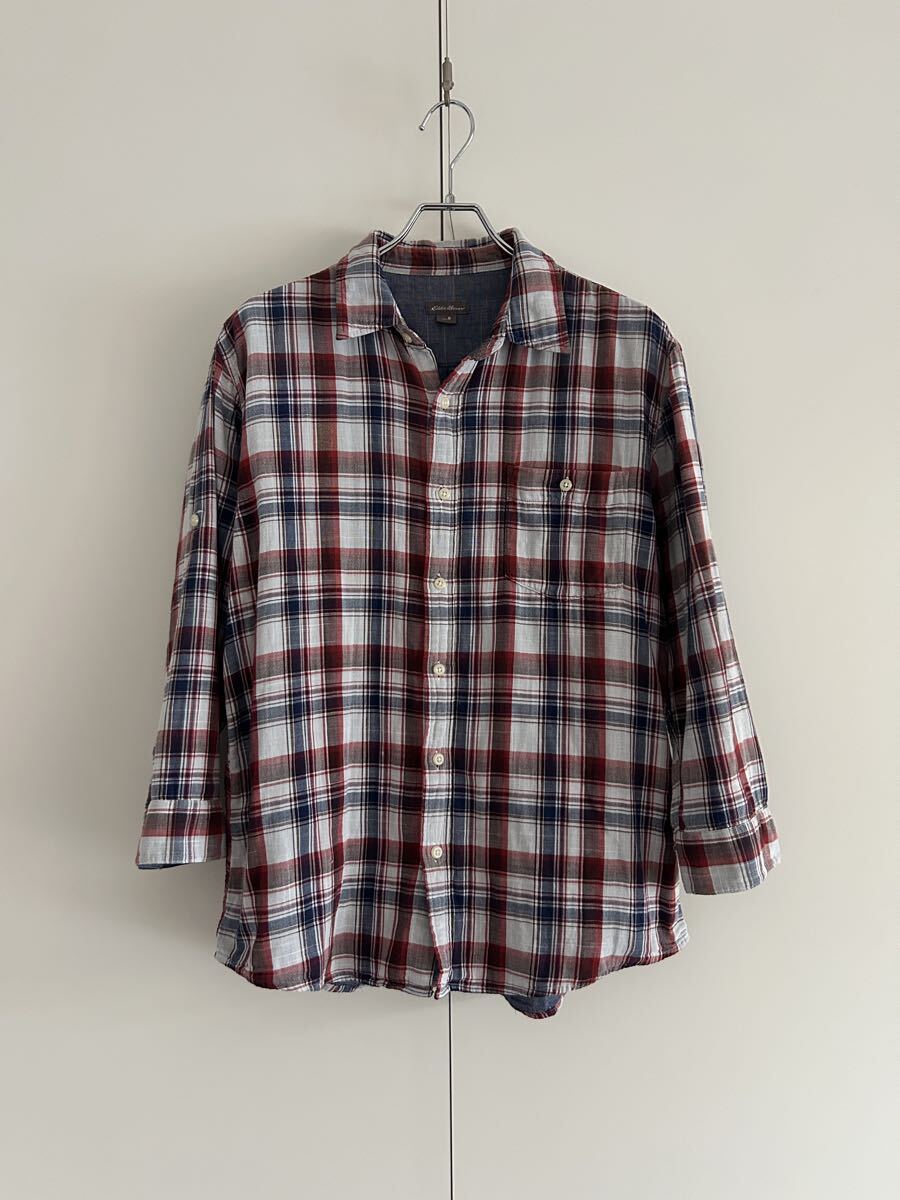 Lightweight double-face fabric with roll-up sleeves and a relaxed L fit—versatile, easy to wear, and classic Eddie Bauer outdoor style.