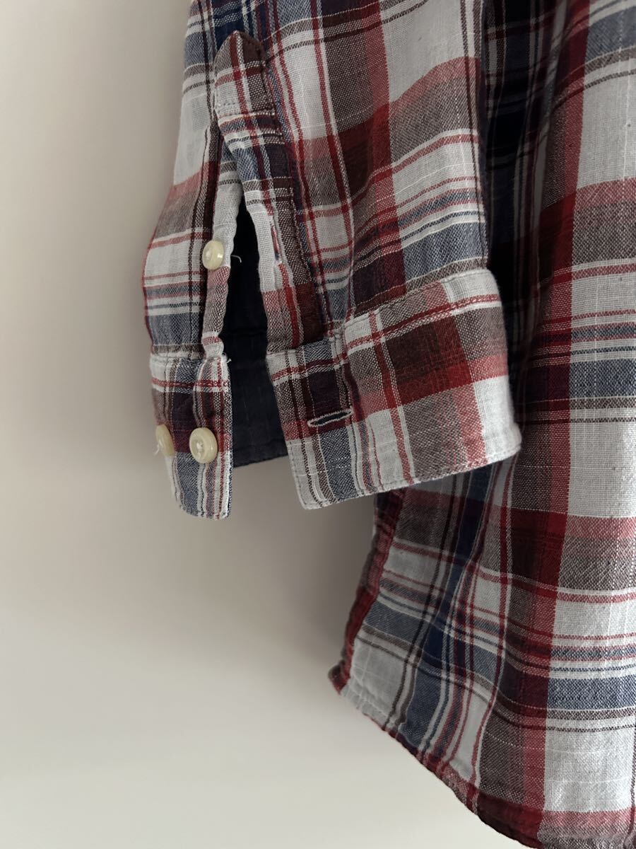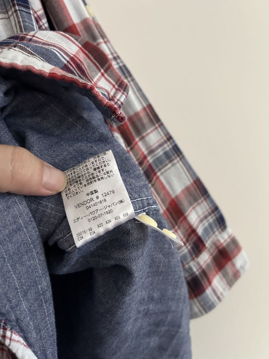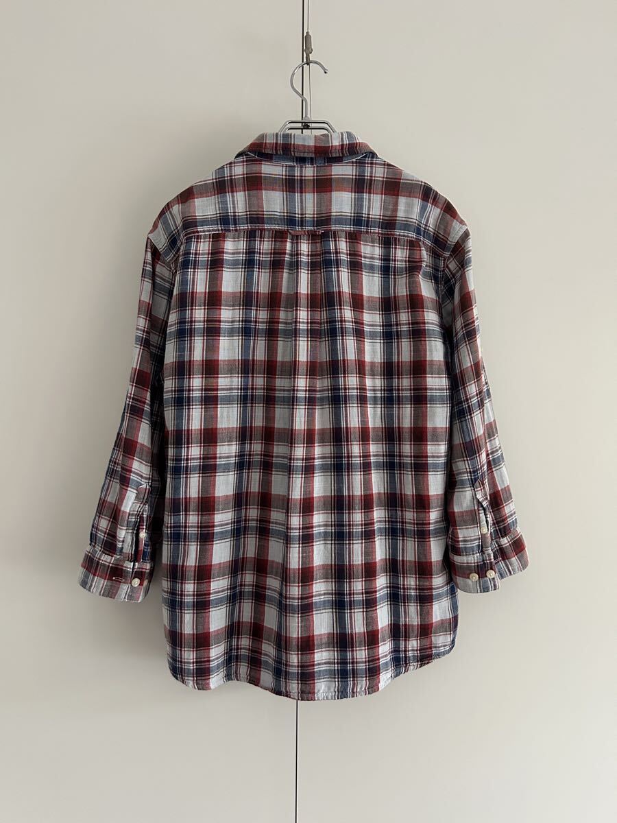軽さのあるコットン生地に、裏側はシャンブレー仕様のダブルフェイス。ふと羽織るだけで立体的な表情が出て、古着ならではのほどよい抜け感が魅力の一枚です。袖はロールアップして留められるタブ付きで、季節をまたいで使いやすい点もポイント。アメリカンカジュアルにすっと馴染む色合いで、デニムにもチノにも相性抜群です。