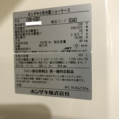 【業界最長1年保証】冷蔵ショーケース ホシザキ USB-63B1 業務用 中古/送料別途見積