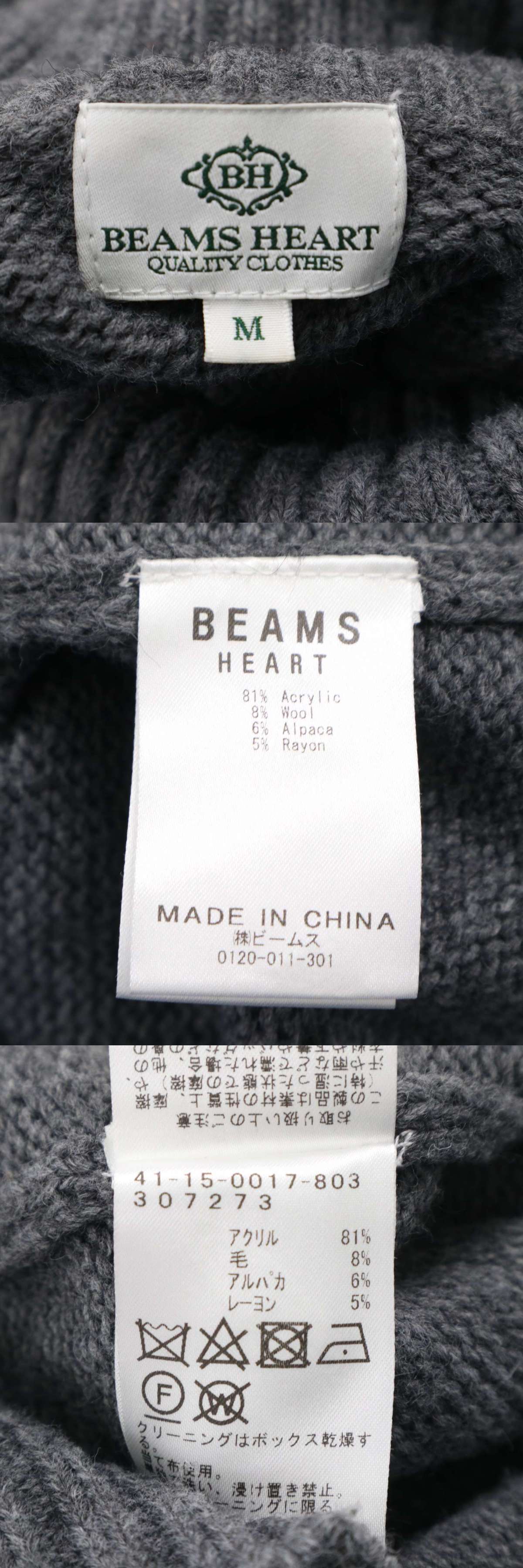 BEAMS HEART ビームス ハート 秋冬 アルパカ ウール混★ タートルネック ニット セーター Sz.M メンズ 灰 グレー
