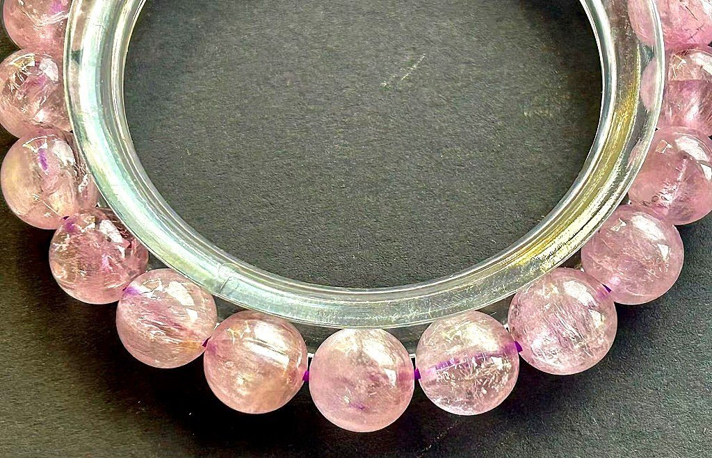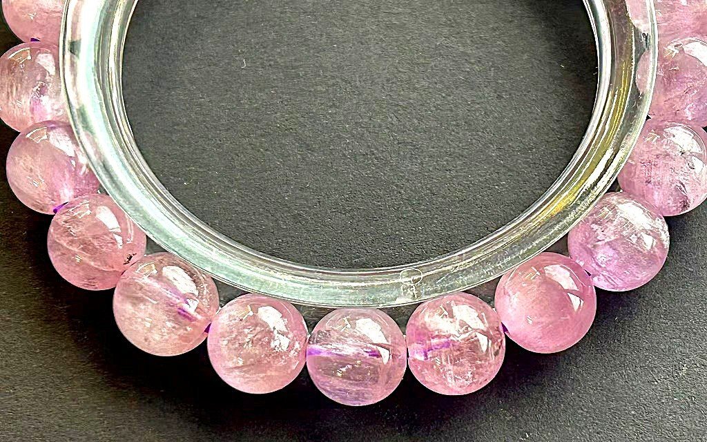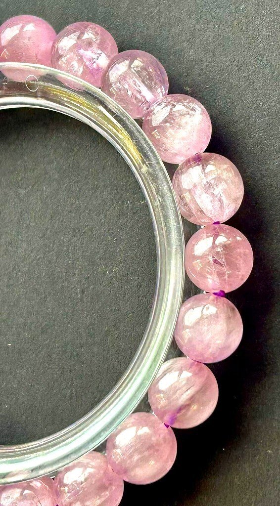 | 原産地:ブラジル ★ 珠の直径:約9mm(±1mm) ★ブレスの内径:約 17cm(±2cm) ★重量:約28g 美しい色のリシア輝石は、クンツァイトはスポデューメン(スポジュメン・リシア輝石)という鉱物の一種。ピンクや紫がかった色あいの石をクンツァイト、緑色~黄緑色の石をヒデナイト、黄色の石をトリフェーンなど、それぞれ異なった名称で呼ばれています。他にも無色やグレー、茶色っぽい物など、スポデューメンには様々な色あいがありますが、どの色も淡く優しい柔らかな雰囲気が魅力です。 ★ | |||