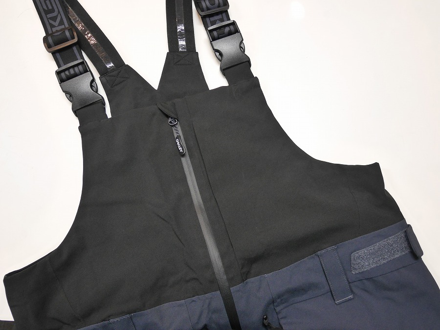 耐水圧、透湿性ともに10,000(mm, gm)の2レイヤーのビブパンツ。
