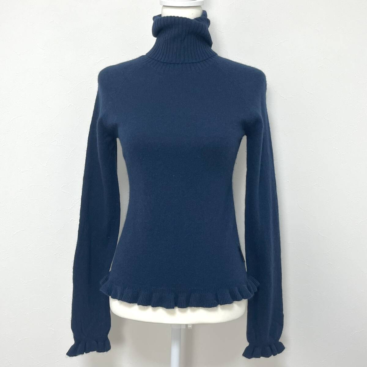 ◇ DKNY JEANS ダナキャラン ニューヨーク ジーンズ ニット 長袖 トップス フリル タートルネック 無地 レディース サイズ S 青 ブルー