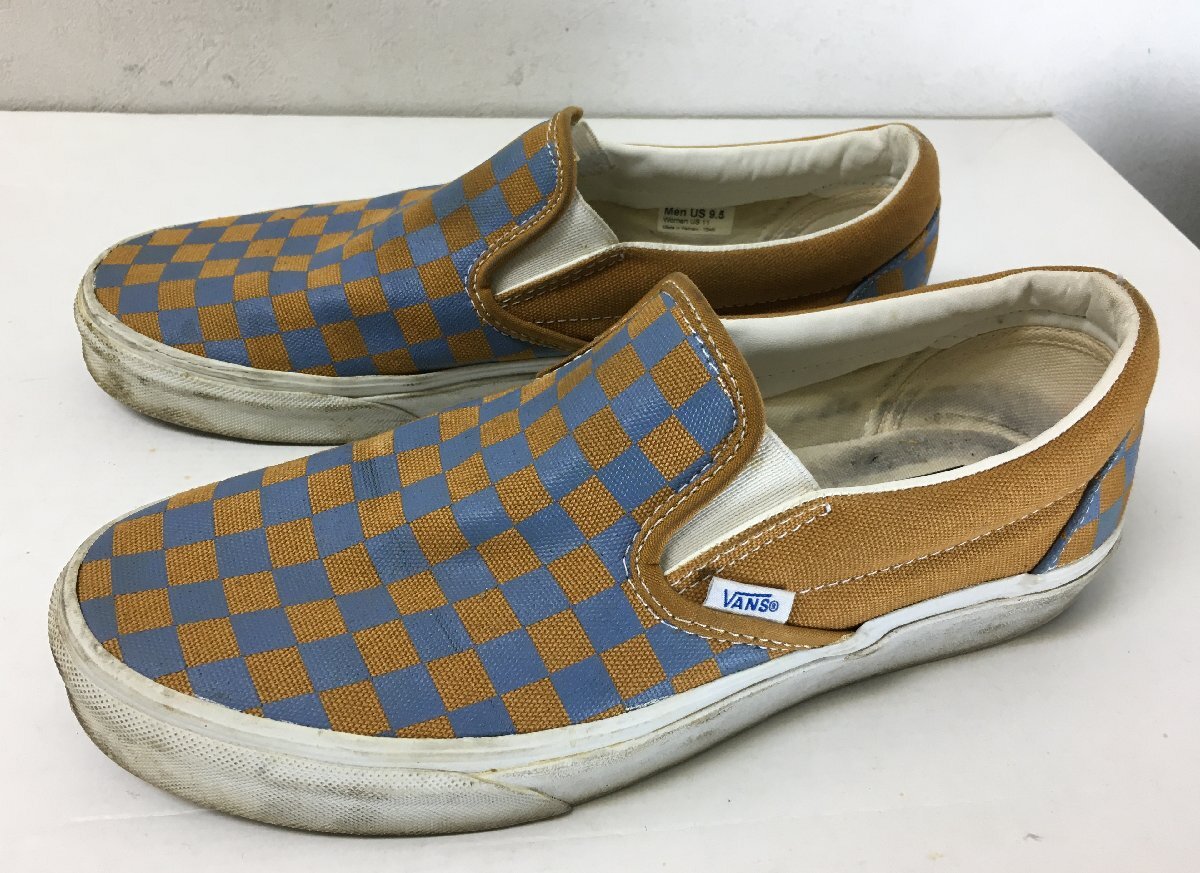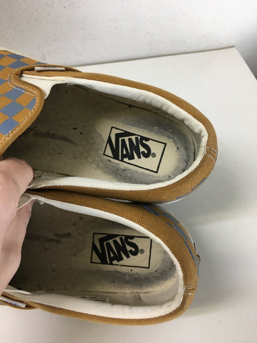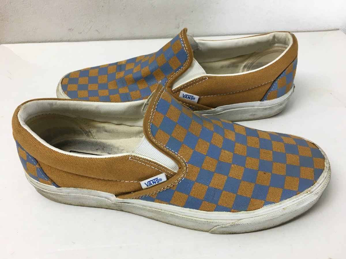 ◆ ◆VANS バンズ classic SLIP ON チェッカー フラッグ スニーカー マスタードグレー系 サイズ9.5 27.5cm