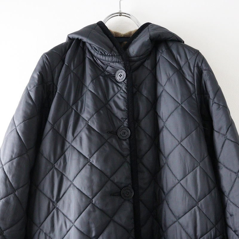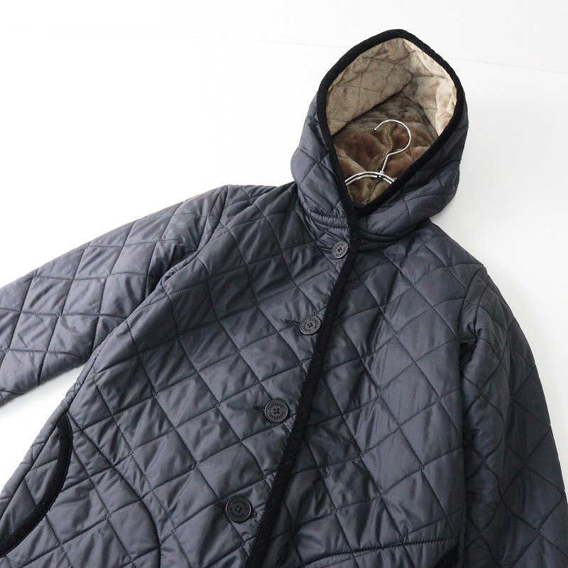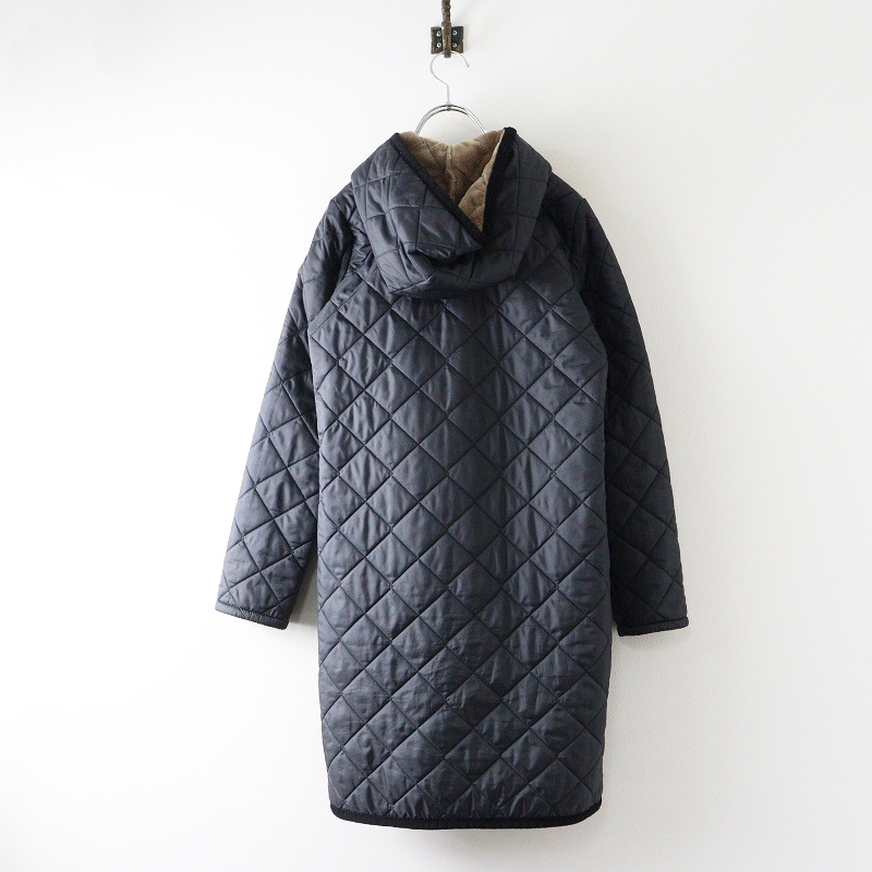 英国製 ラベンハム LAVENHAM BRUNDON ブランドン ボア キルティング フーデッド コート 36|ネイビー 【2400014665093】