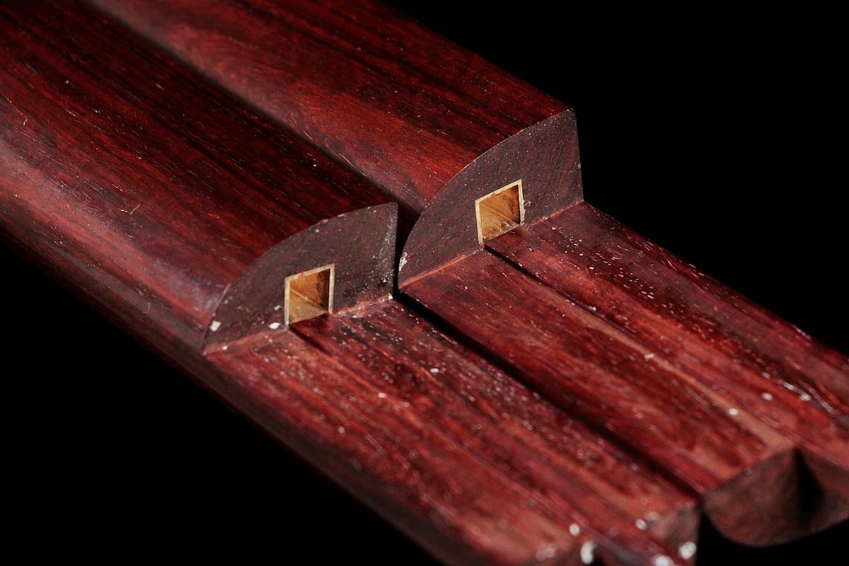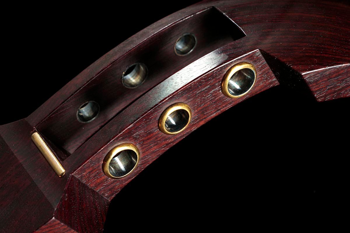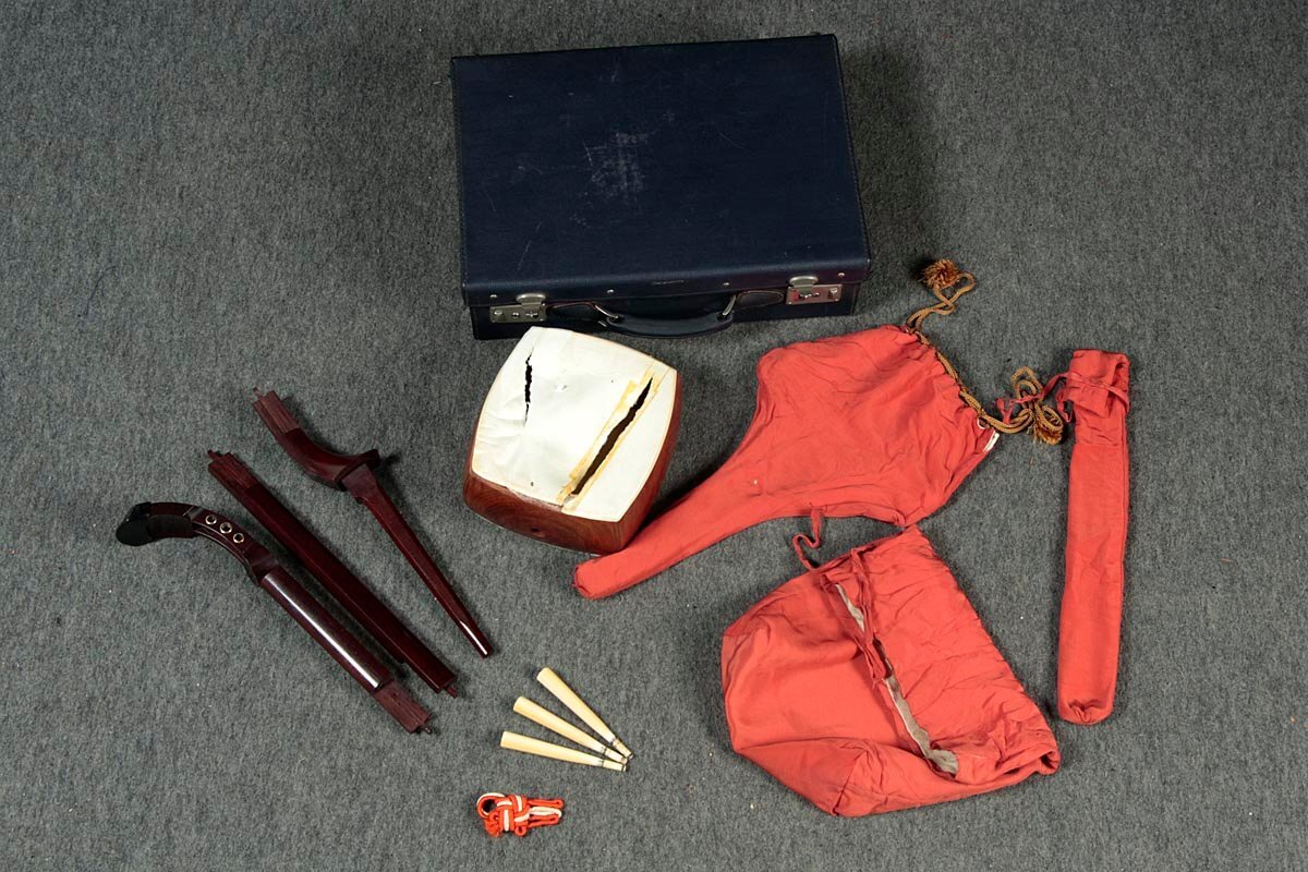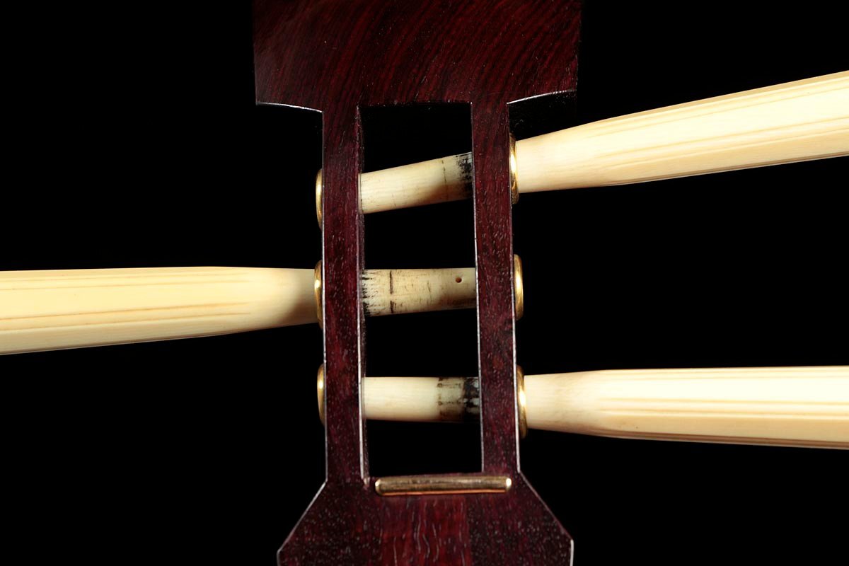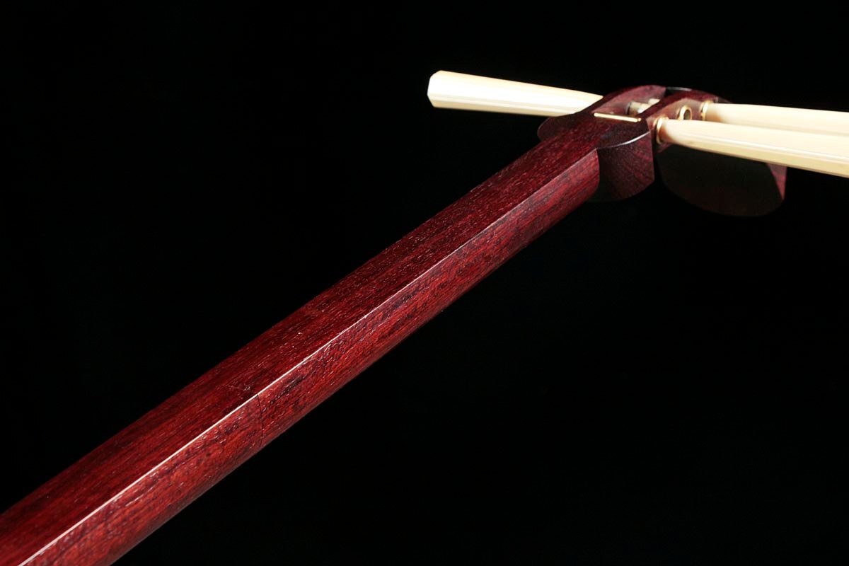 | ◆ 時代和楽器 綾杉胴 紅木 トチ 棹 三味線 三つ折れ 全長97.4cm 牙糸巻付 ケース付 ◆