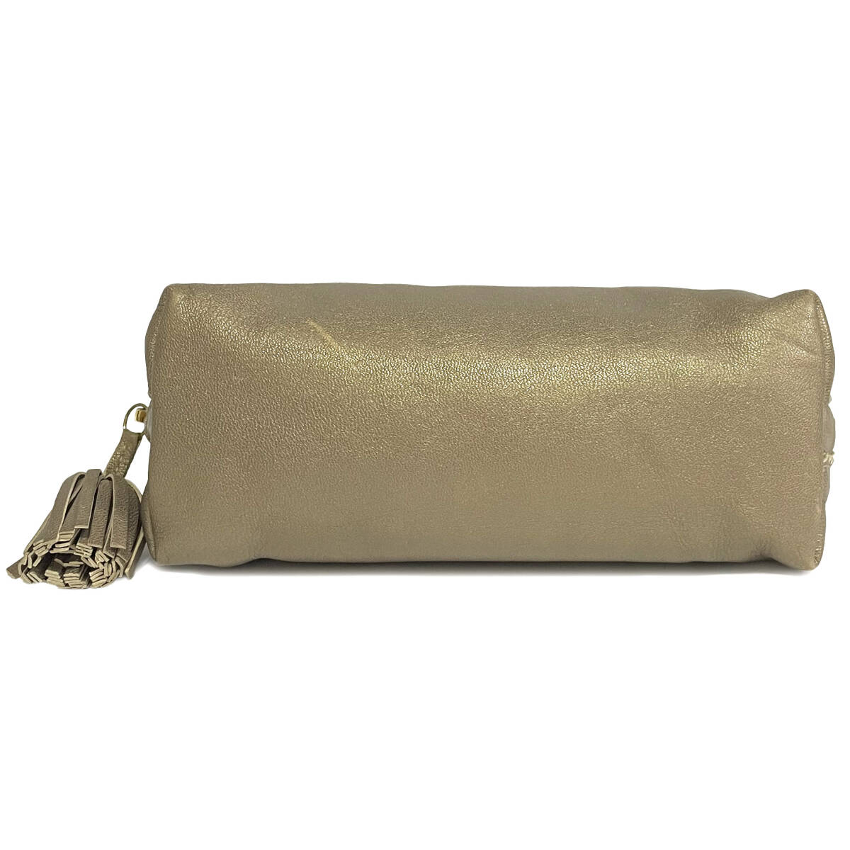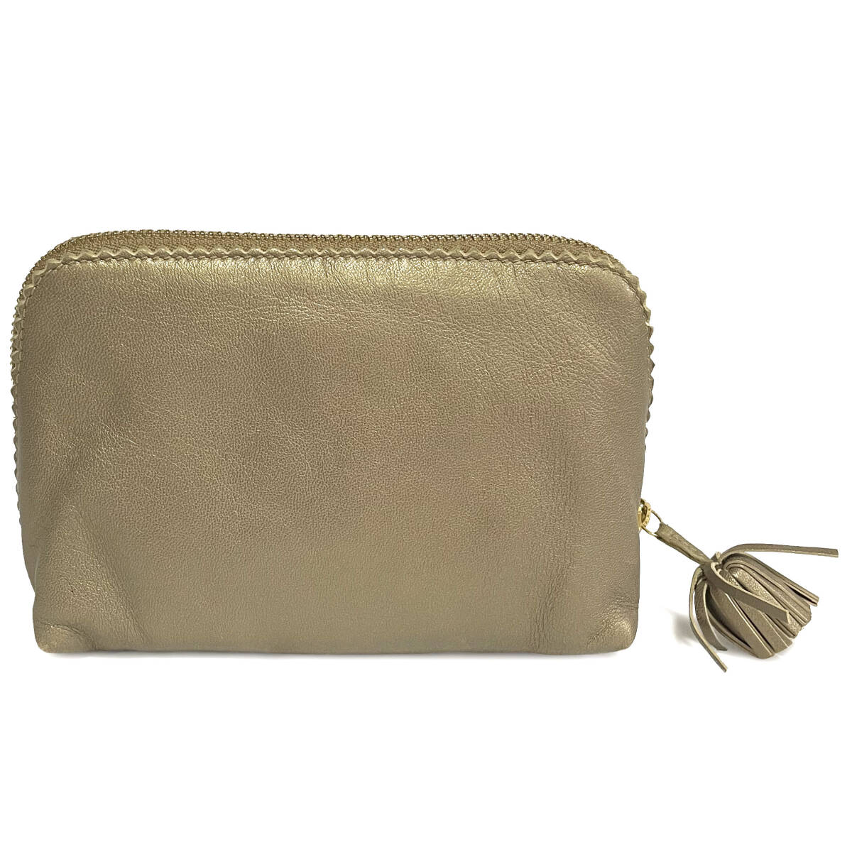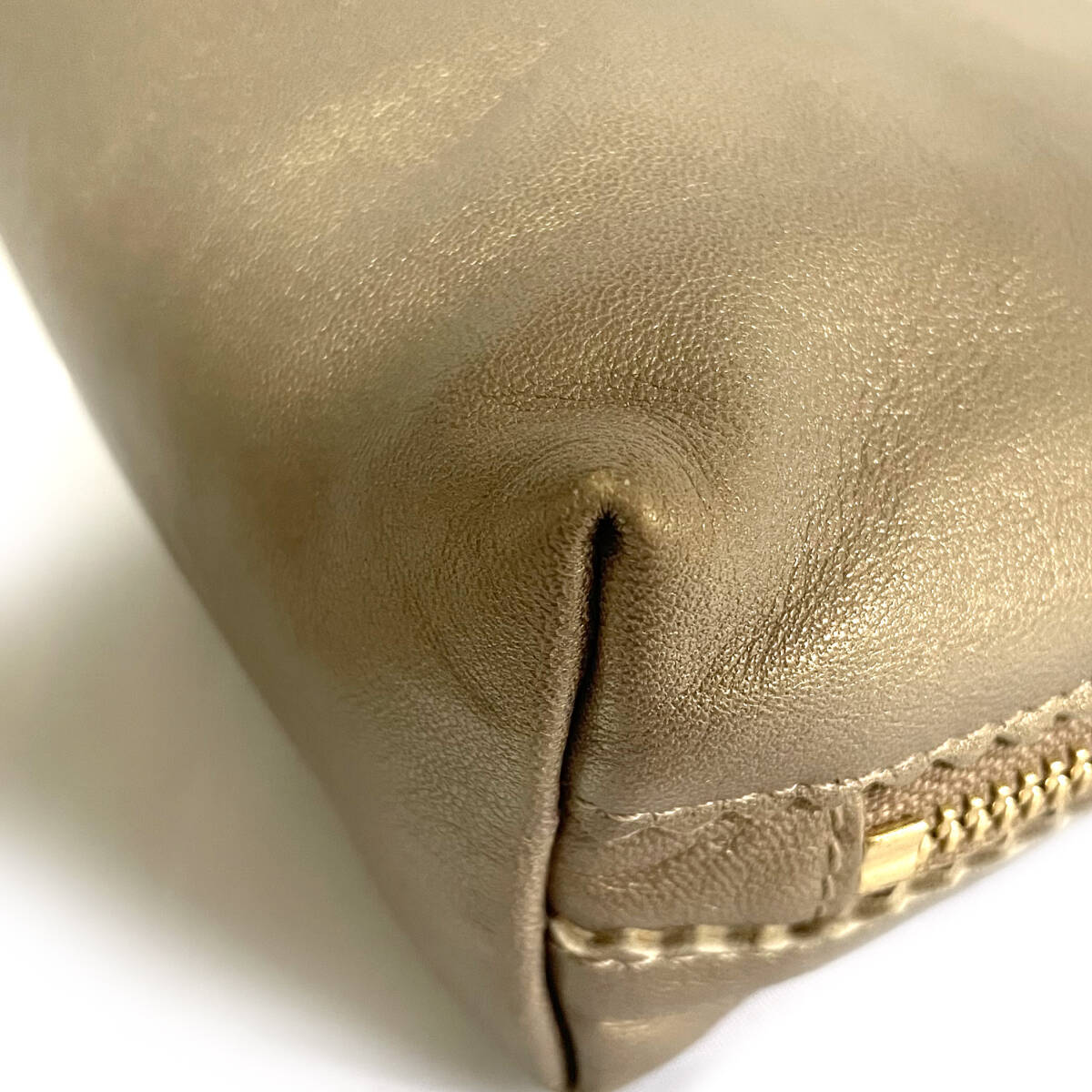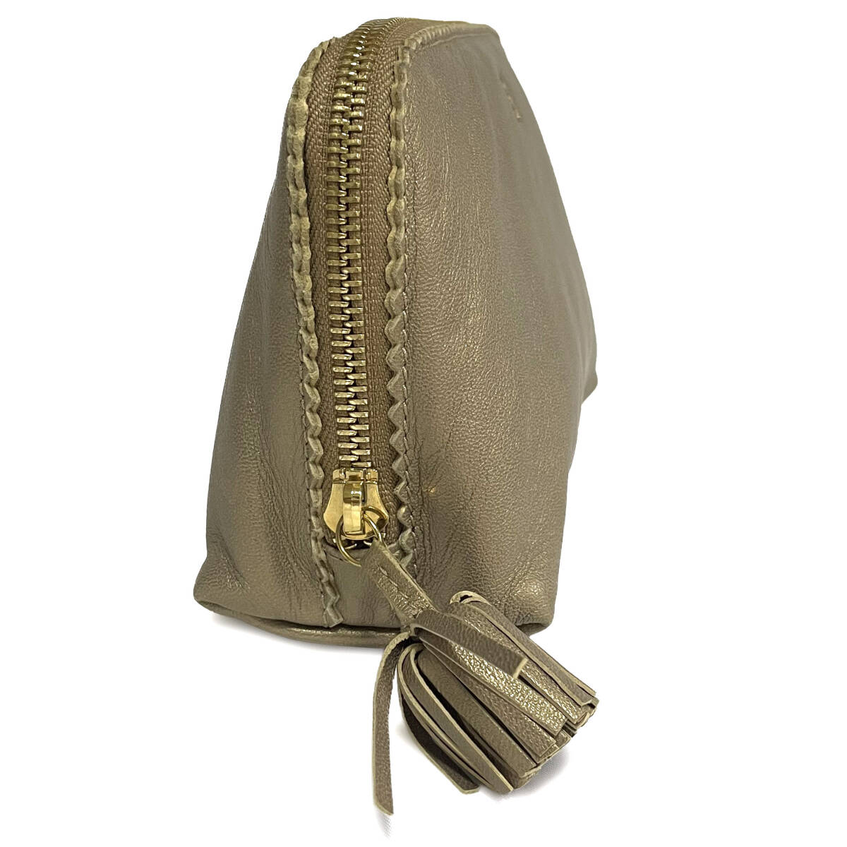 LOEWEタッセルチャームポーチベージュゴールドナッパレザーマチあり小物入れワンポイントロゴシンプルファスナー開閉ブランド鑑定済み