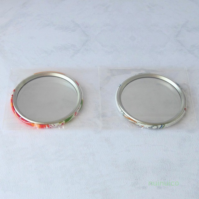 柄生地を使用して作成したコンパクトミラーです。化粧ポーチにお一ついかがですか?