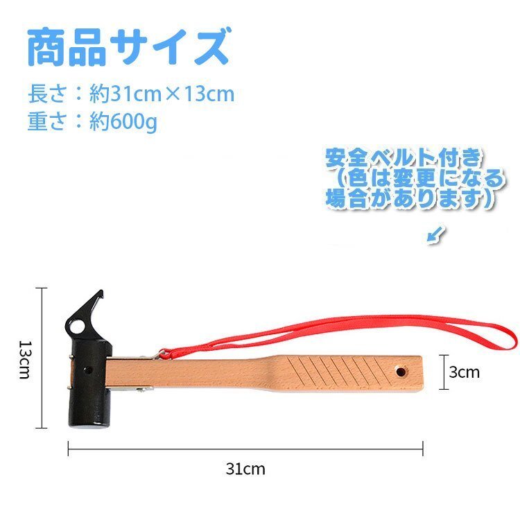◆ペグハンマー アウトドアハンマー 金づち キャンプハンマー ペグ打ち キャンプ アウトドア 安全ベルト付き ペグの引き抜く 安全ベルト付き 便利グッズ 鉄ハンマー SDKHAM27
