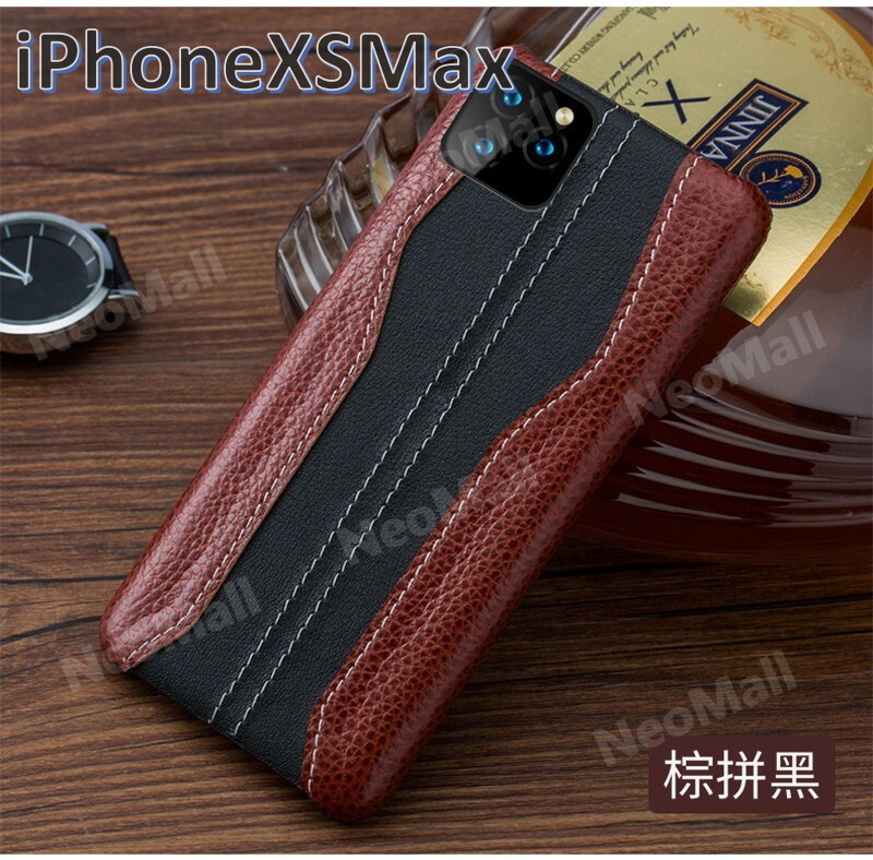 人気商品 ☆ アイホン 牛皮 型押し レザー スマホケース ブラウン×ブラック アイホンケース 携帯ケース カバー iPhoneXSMax 【118】