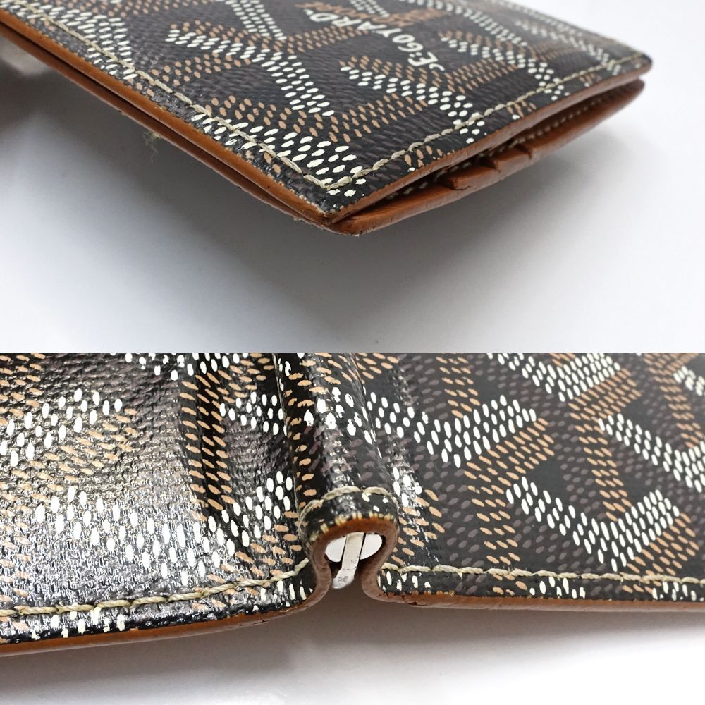 【中古】GOYARD ゴヤール 札入れ サントマPM 二つ折り財布 PVCxレザー ノワール ナチュラル レディース /188593