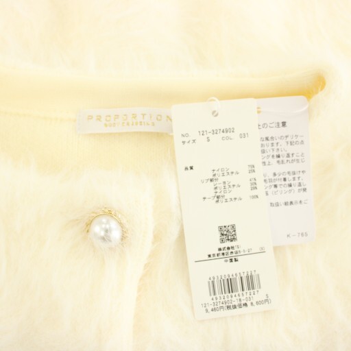 プロポーション ボディドレッシング 23AW ビジュー釦ロングフェザーカーディガン クルーネック 長袖 S 白 1213274902 レディース