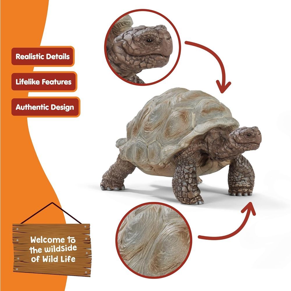 体の大きなゾウガメは体重が400キロを超すこともあります。草を探して歩き回るのに適した短くて力強い脚を、シュライヒワイルドライフのフィギュアで再現しました。ゾウガメはとても長生きで、野生だと100年以上生きることも珍しくありません。