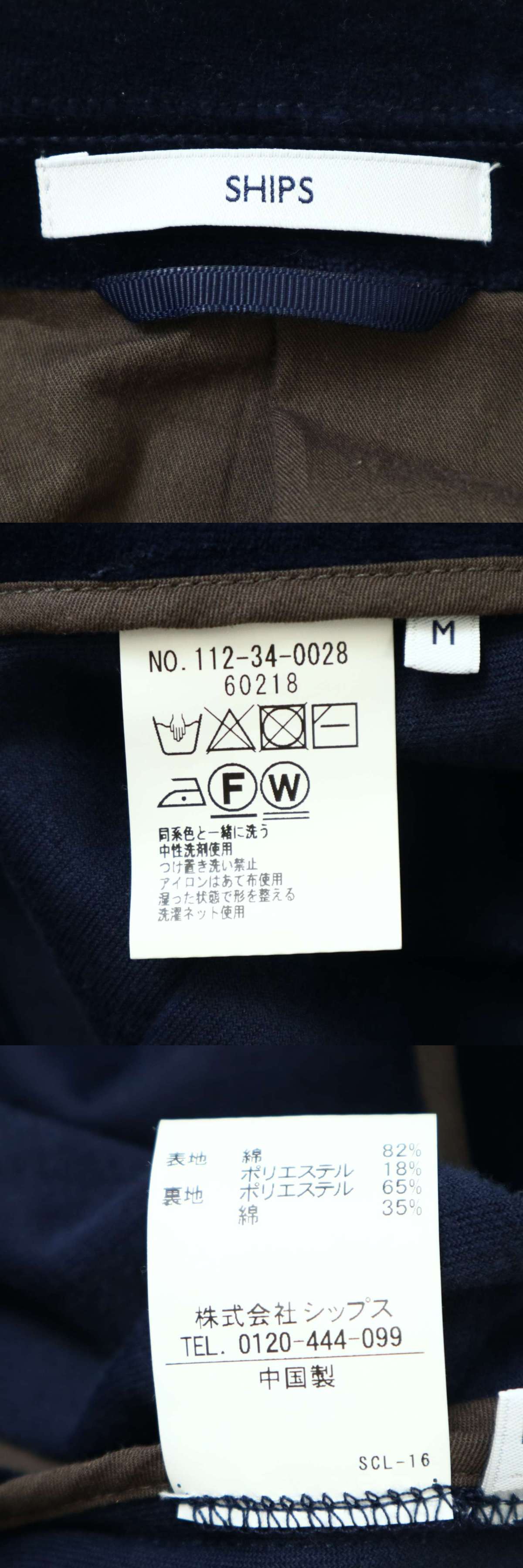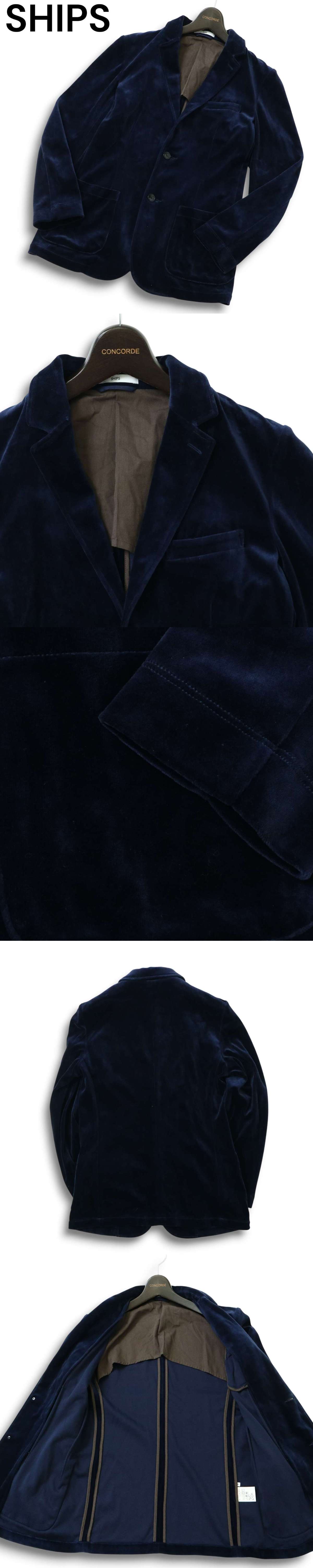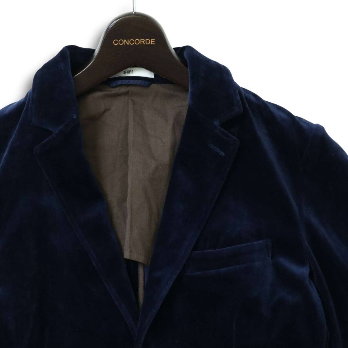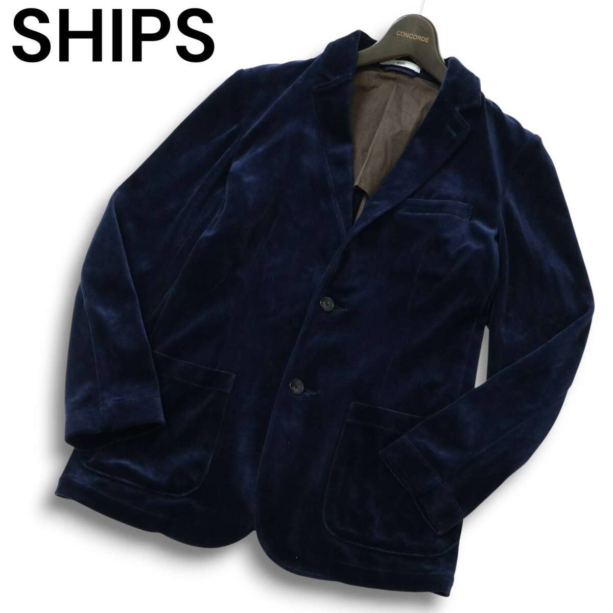 SHIPS シップス 秋冬 背抜き ベロア★ テーラード ジャケット Sz.M メンズ 紺 ネイビー
