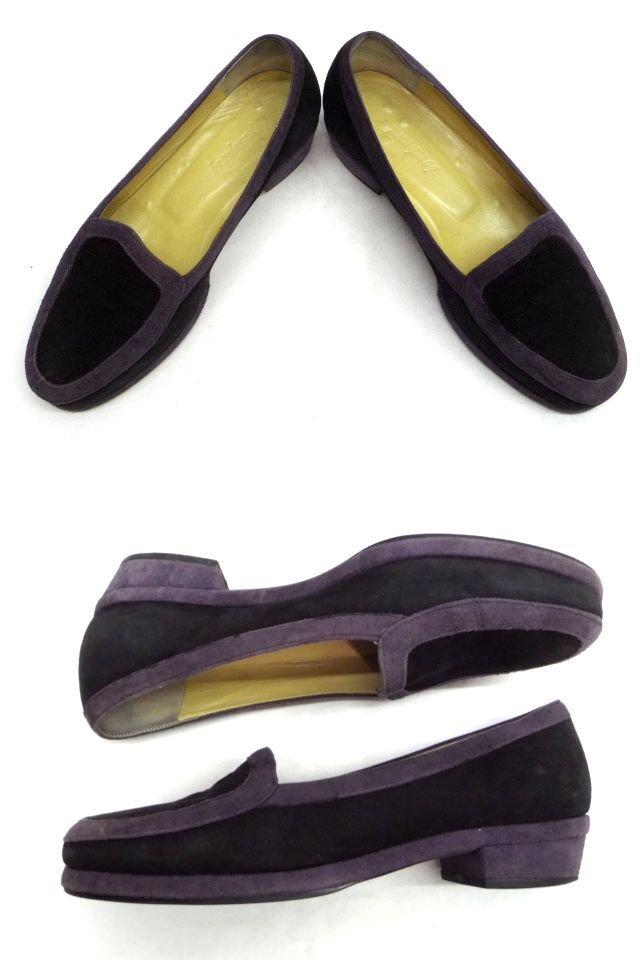 ★be released◎ビーリリースト/ローファー/スウェード/ブラック/パープル/日本製/23.5cm