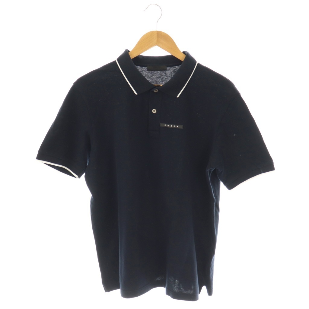 プラダ PRADA SJN256 25年 鹿の子 ラバーロゴ ポロシャツ 半袖 XL ダークネイビー ホワイト /ES ■OS ■SH メンズ