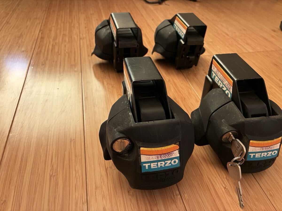 Terzo テルッツォ (by PIAA) ルーフキャリア ベースキャリア フット 4個 ルーフレールのある車で使用していました。鍵は2個、取扱説明書あります。車が変わったので出品します。