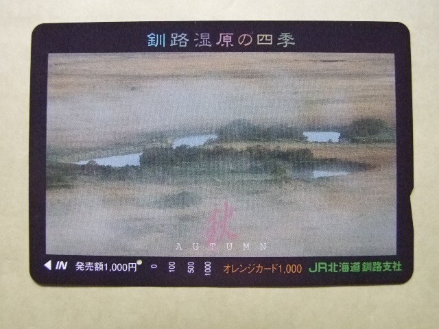 ◇オレンジカード 使用済 1穴券◇JR北海道・釧路支社『釧路湿原の四季 秋』USED品 309808