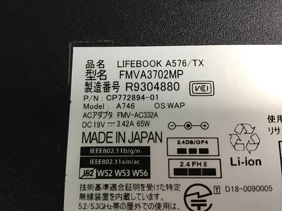 FUJITSU FMVA3702MP LIFEBOOK A576/TX i5 6360U 2.00GHz■ジャンク品