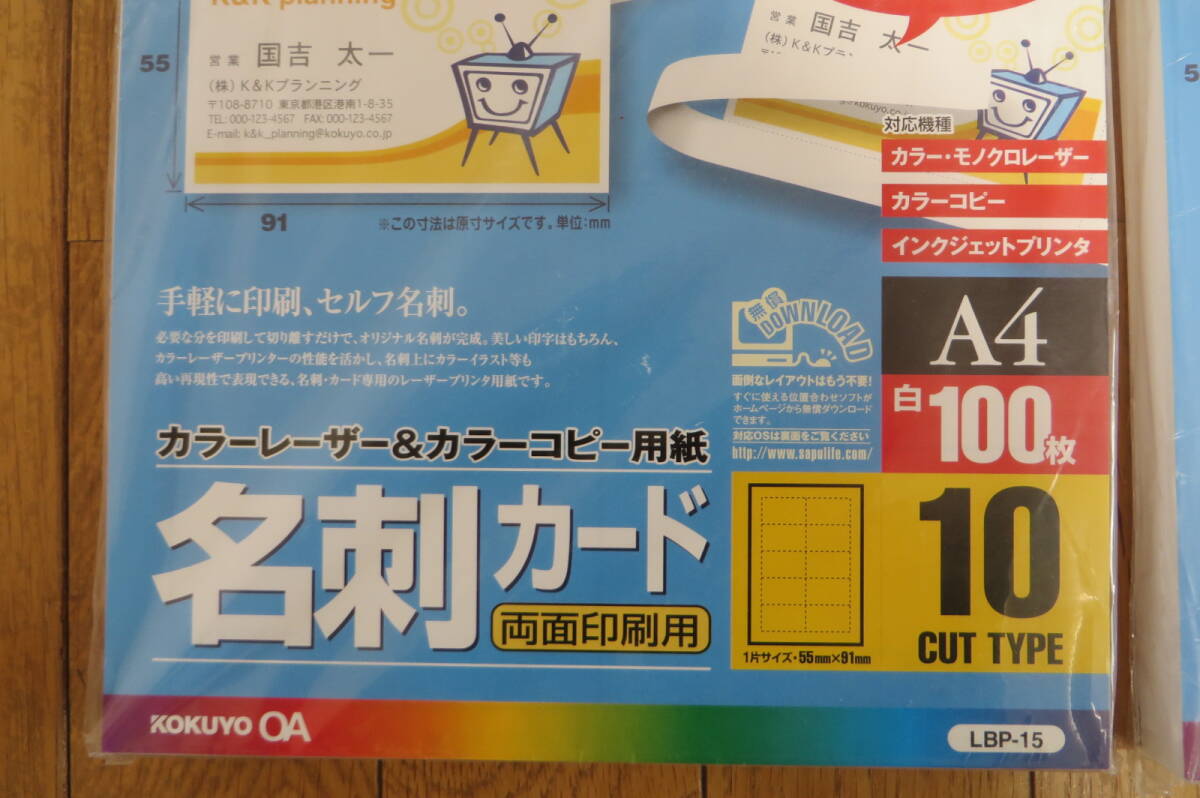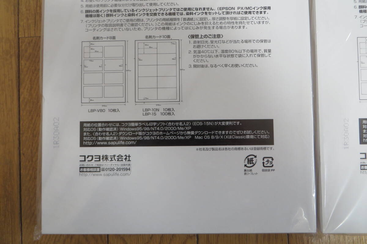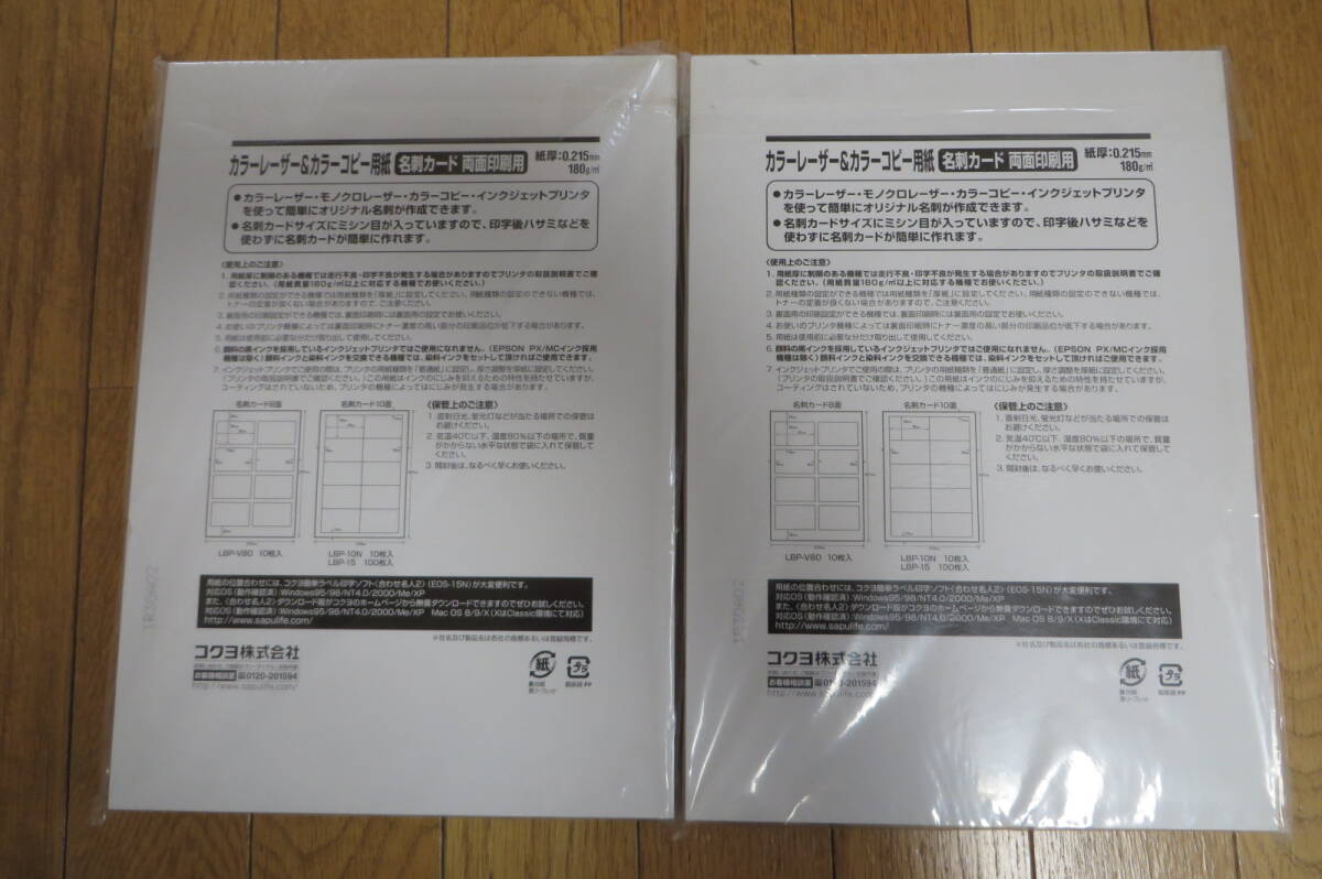 1629 コクヨ カラーレーザー&カラーコピー用紙 名刺カード 両面印刷用 A4 10面 100枚 LBP-15 2セット 長期保存品