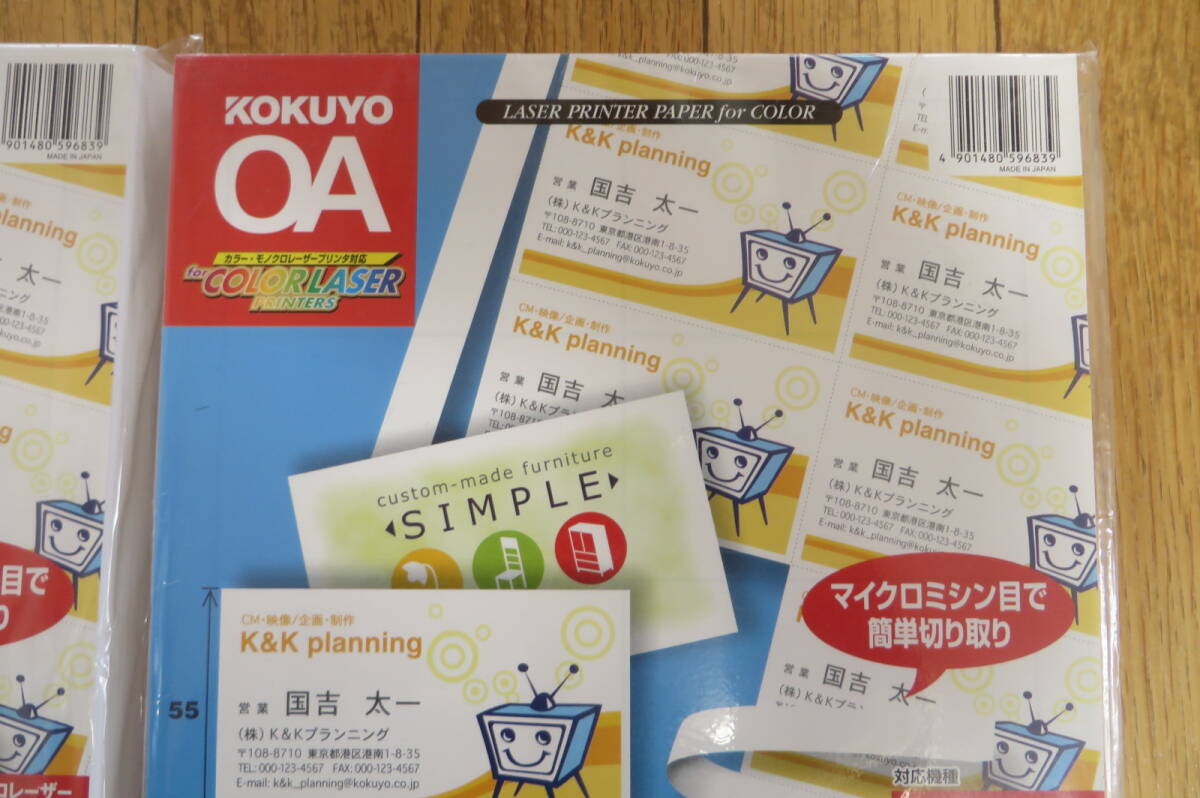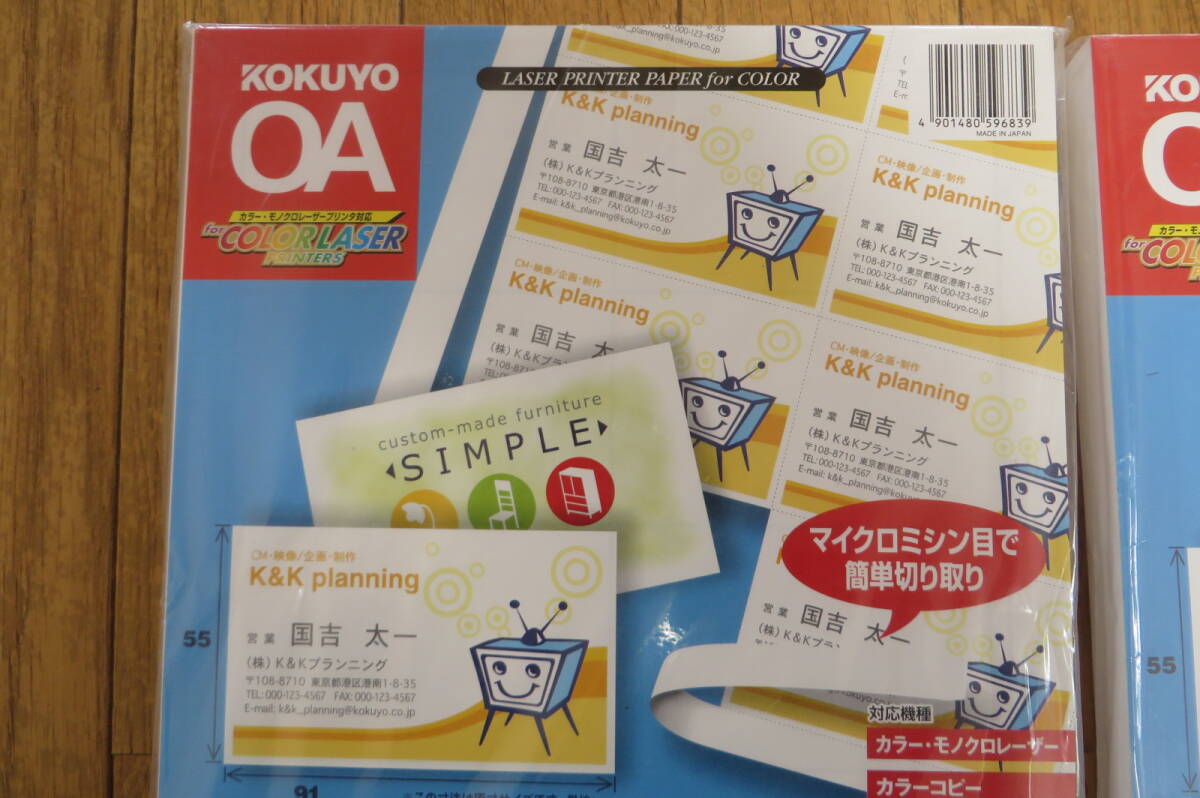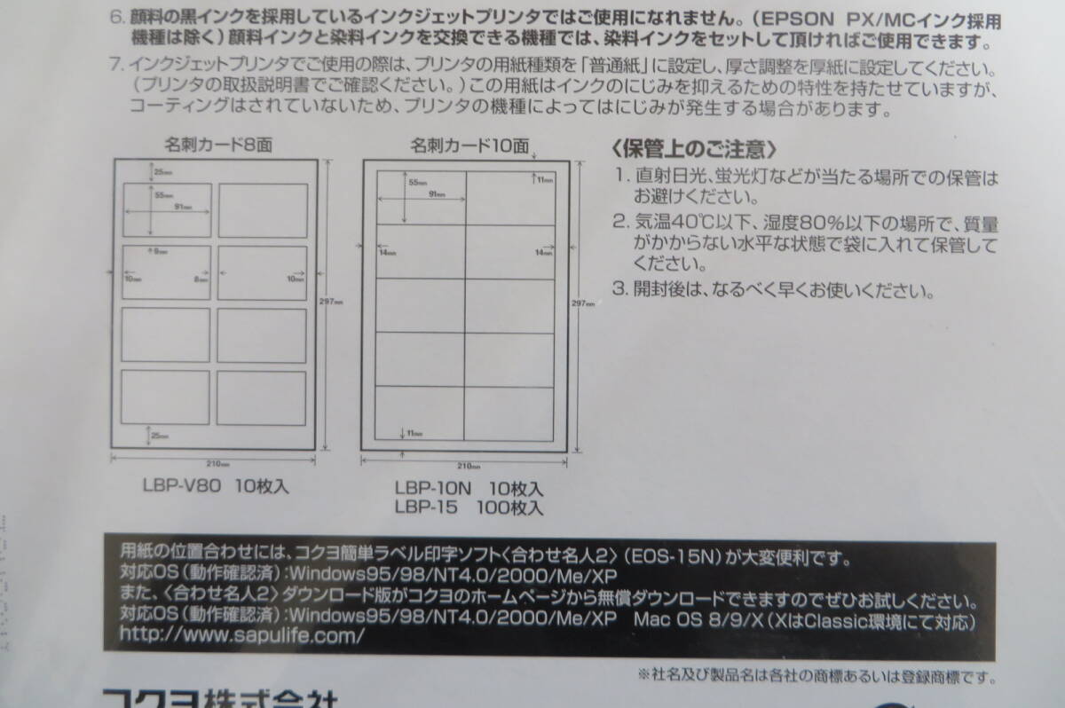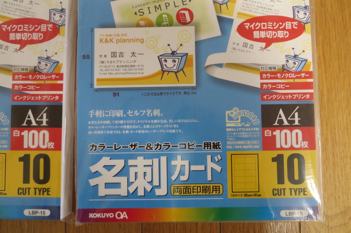 1629 コクヨ カラーレーザー&カラーコピー用紙 名刺カード 両面印刷用 A4 10面 100枚 LBP-15 2セット 長期保存品