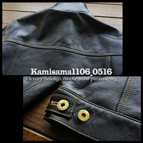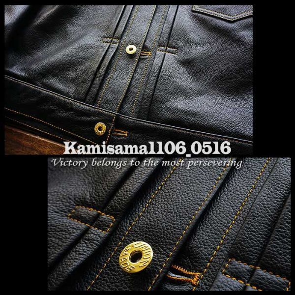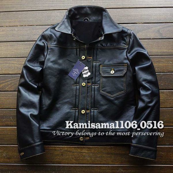 イタリアンオイルレザーのカウハイドで作られた1930年代のヴィンテージデニムジャケットの名作「ファースト」がモチーフのレザージャケットです。UNION MADEゴールドネオバーボタンを採用。