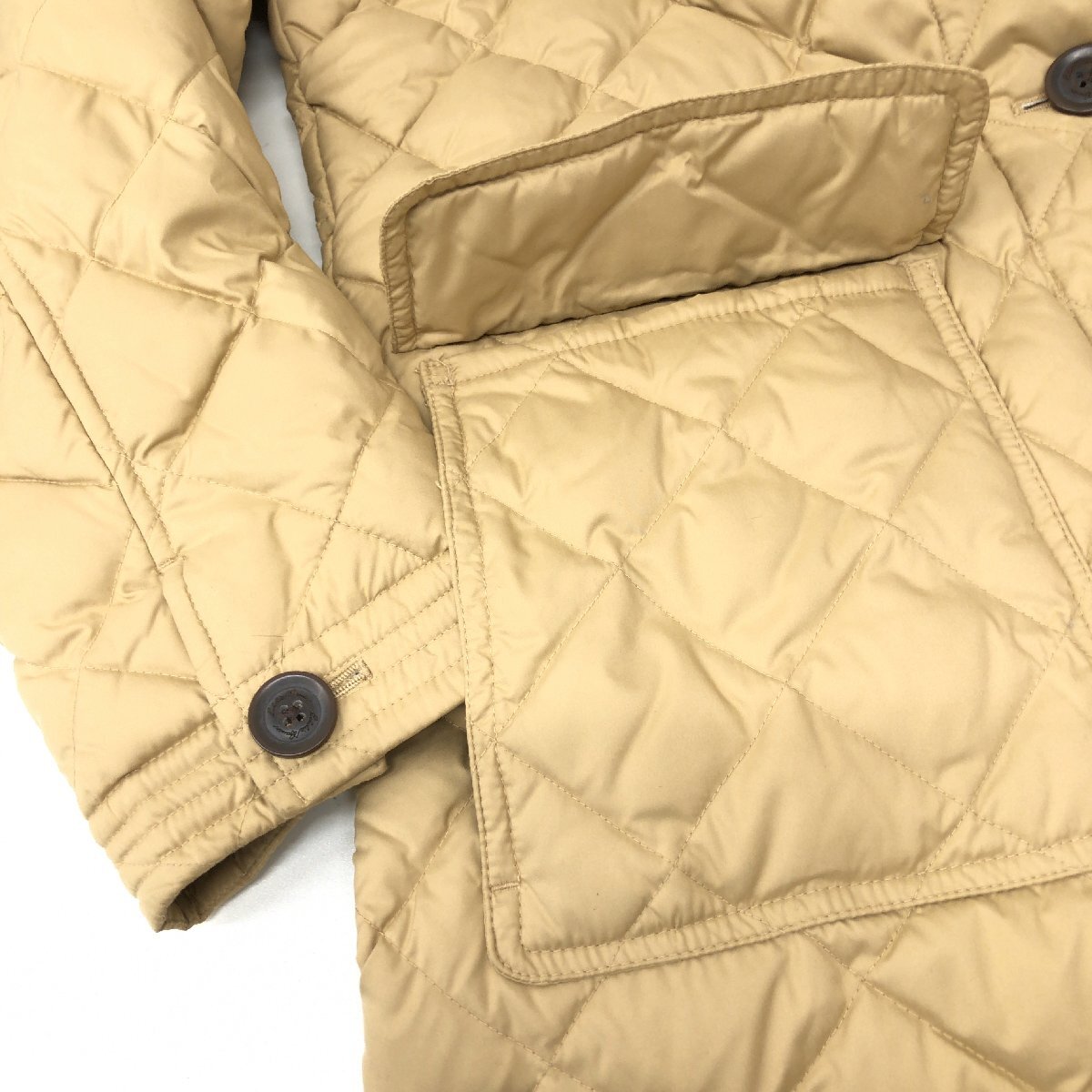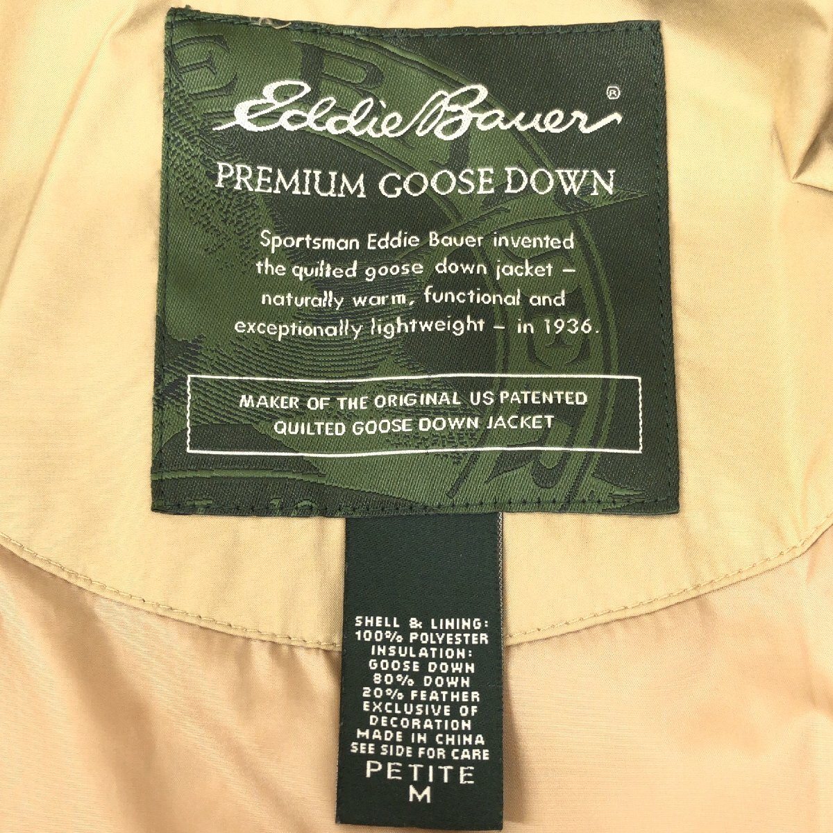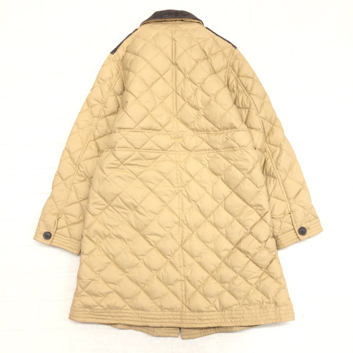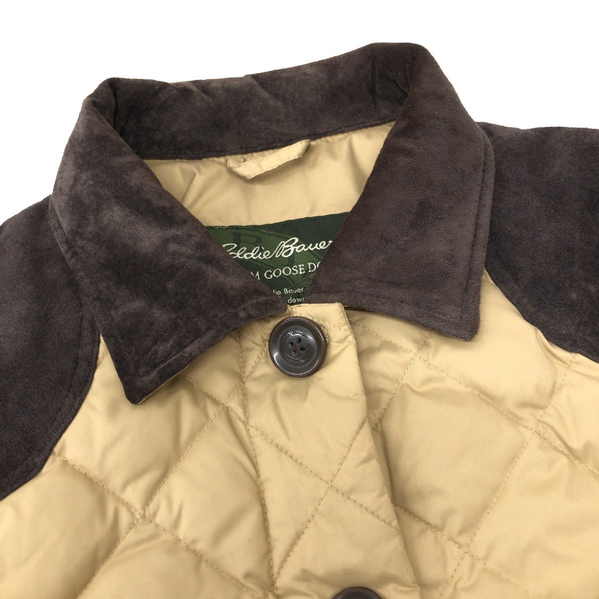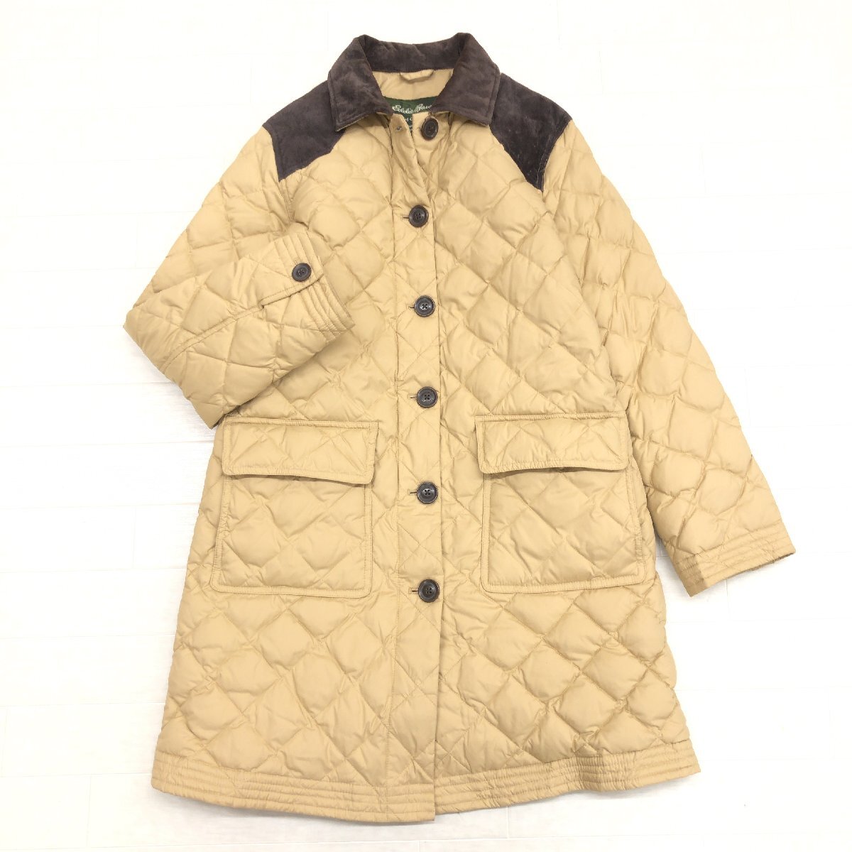 ◆Eddie Bauer エディーバウアー 部分本革 レザー キルティング ダウンコート M(JP:L相当) ベージュ ダウンジャケット ロングコート 女性用