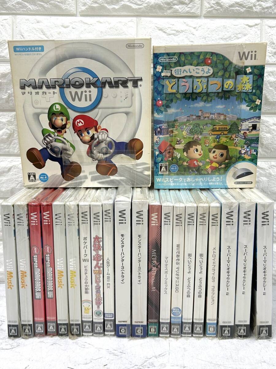SAランク程度 現状での出品になりますのでノークレーム、ノーリターンでお願いいたします。 ★商品状態 保管品 Nintendo Wii マリオカート ハンドル付 どうぶつの森 Wiiスピーク付 モンハントライ/ポケパーク/ 他 ソフトおまとめです。 未開封ですが保管品となります。 重複するソフトもございます。 外観は経年の汚れ傷み等ございます。 内部等細かい部分は判断できかねます。 画像参照にてご確認お願い致します。 ◎必ず、写真でご確認いただきご判断いただきますようお願い致します。