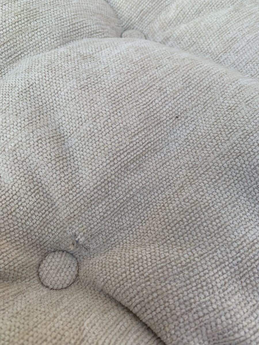 ・クッションのボタンが1つ欠品、一か所小さな破れ有ります。