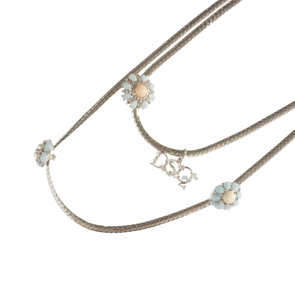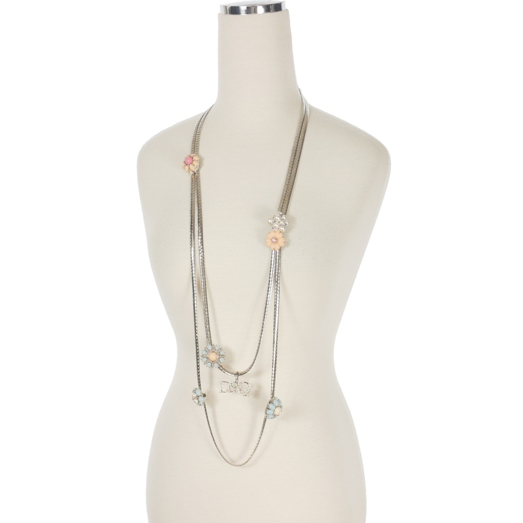ディースクエアード DSQUARED2 23AW フラワーモチーフ ロゴ ロングネックレス ペンダント アクセサリー UNI シルバー S83NE0235