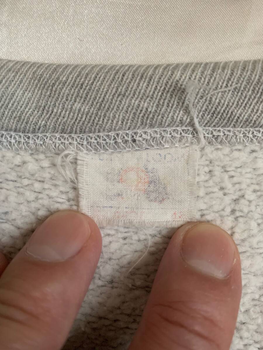 タグの表示がかなり薄くはなってはいますが、青枠とブランド表記が上部に確認できますので50〜60年代のかなり古いヴィンテージスウェットと推測されます。