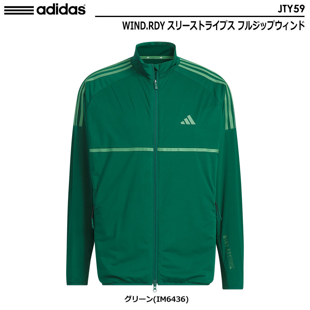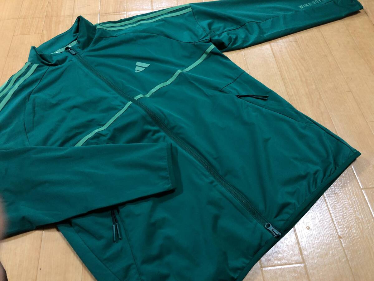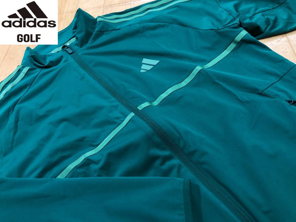 ・スピード発送 新品未使用 adidas Golf(アディダスゴルフ)秋冬WIND.RDY 防風,撥水 スリーストライプスジャケット JTY59(グリーン)L