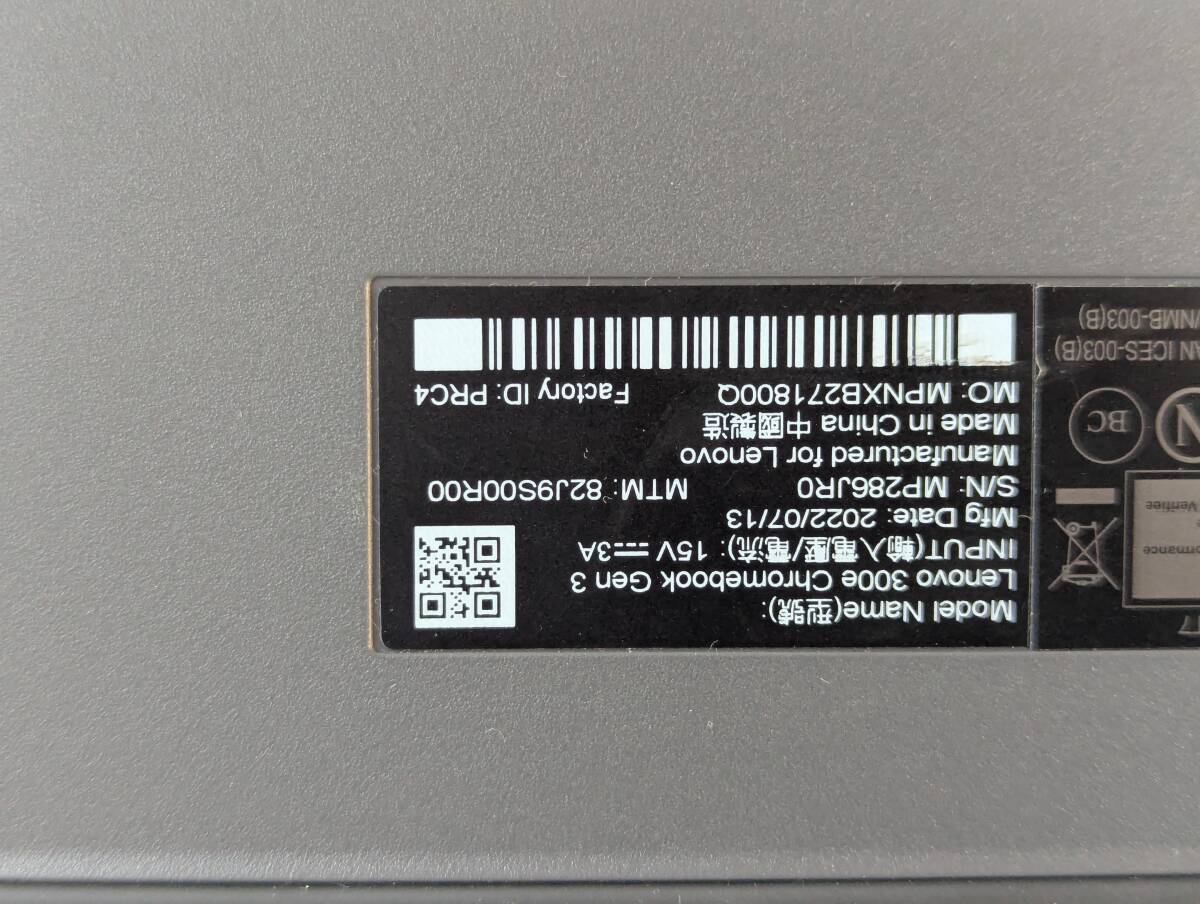 Lenovo 300e Chromebook Gen 3 ノートパソコン バッテリ駆動 (残1時間表示) 動作確認OK 本体のみ 202507221039