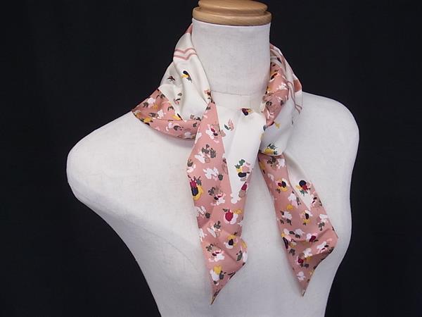 ■美品■ COACH コーチ スカーフ ストール ショール レディース ピンク系×アイボリー系×マルチカラー DJ1713
