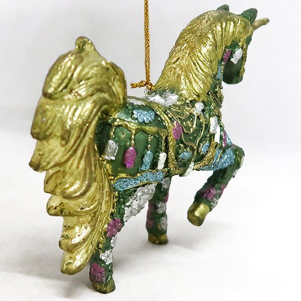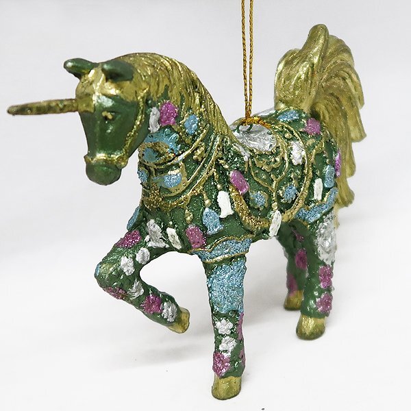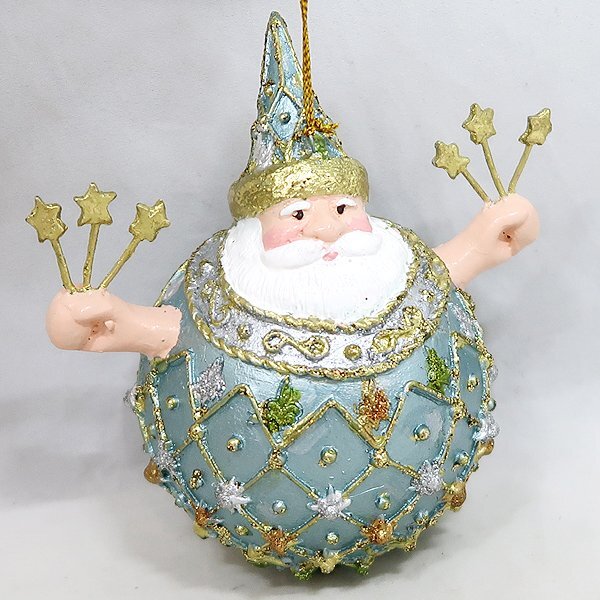 丸いサンタと優しい色味のユニコーンがモチーフのユーモラスなレジン製のオーナメントです。