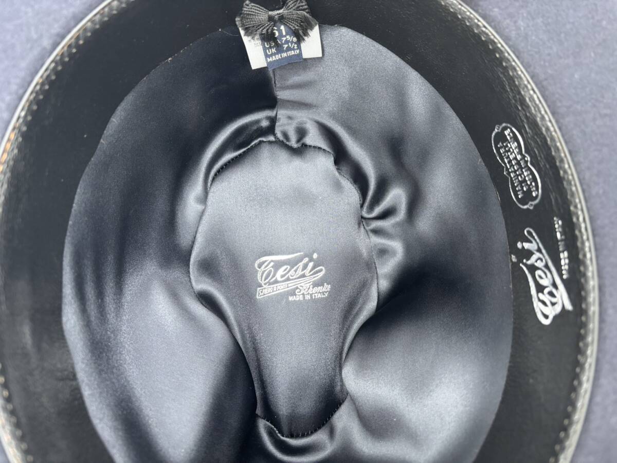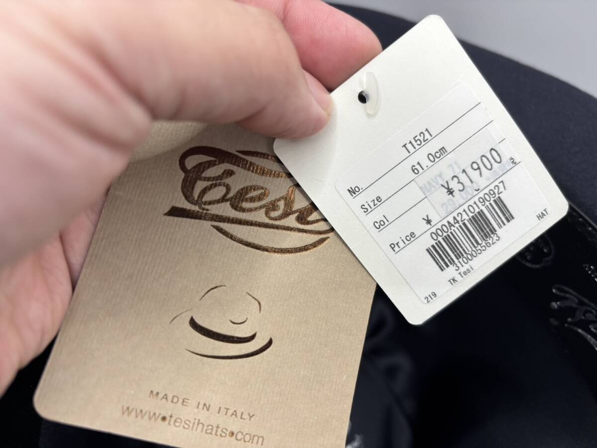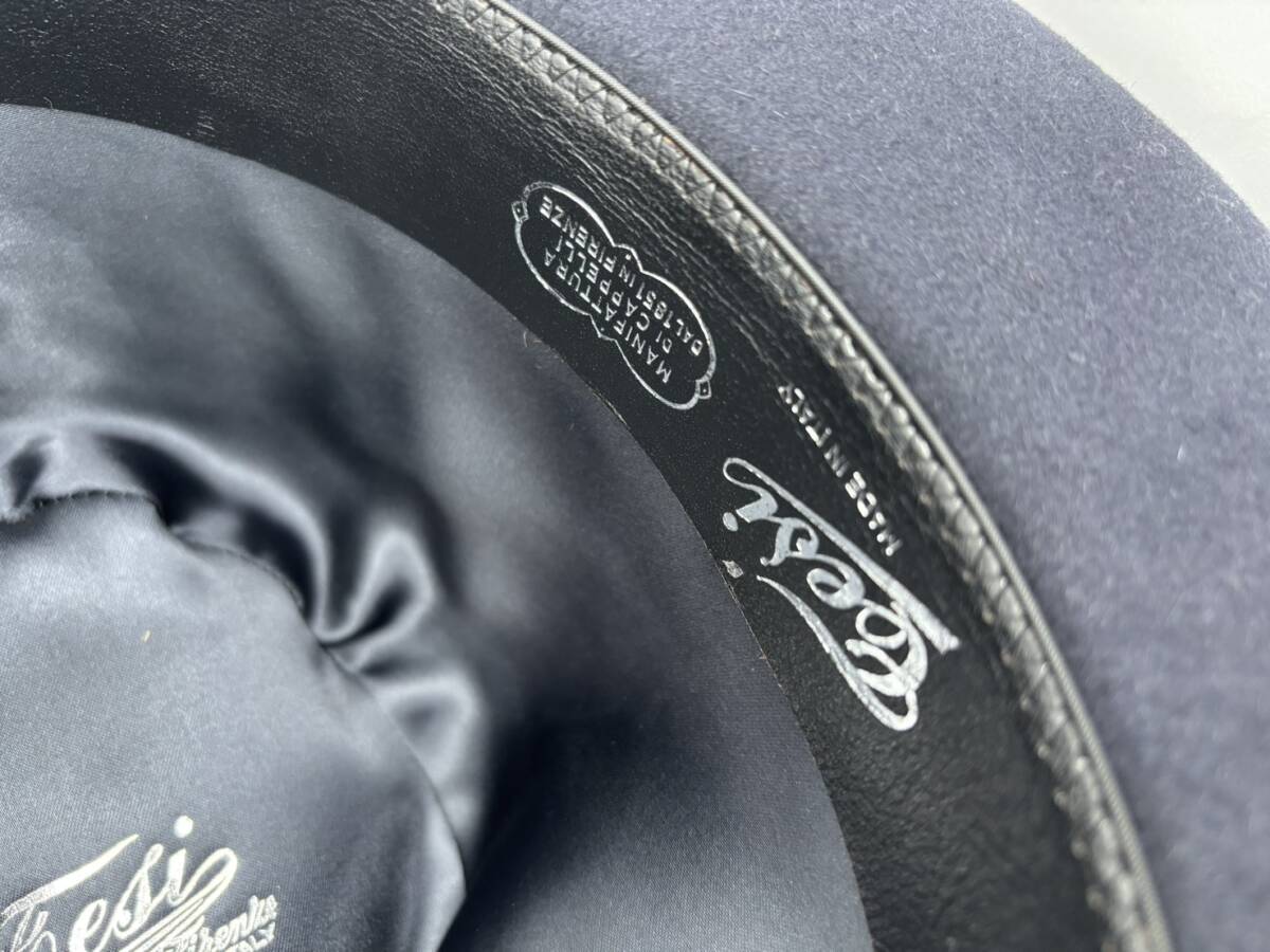 TESI テシ T1521 ネイビー 61cm イタリア製 つば広 ハット ラビット ファーフェルト  兎毛 裏地付 合皮スベリ 定価¥31900(税込)